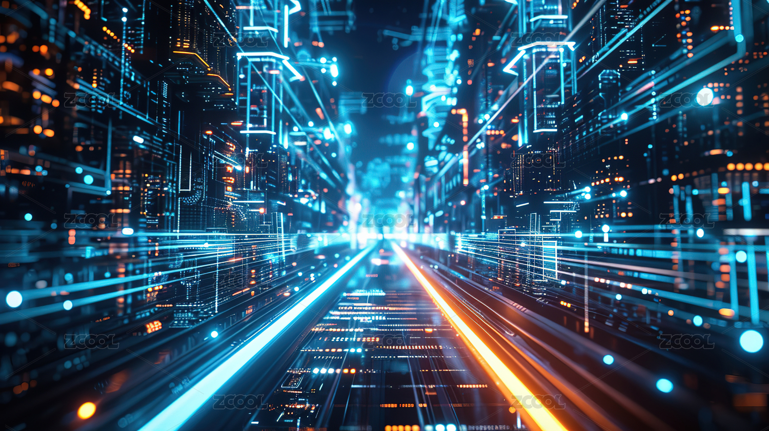 黑暗隧道发光照明抽象技术速度概念三维渲染