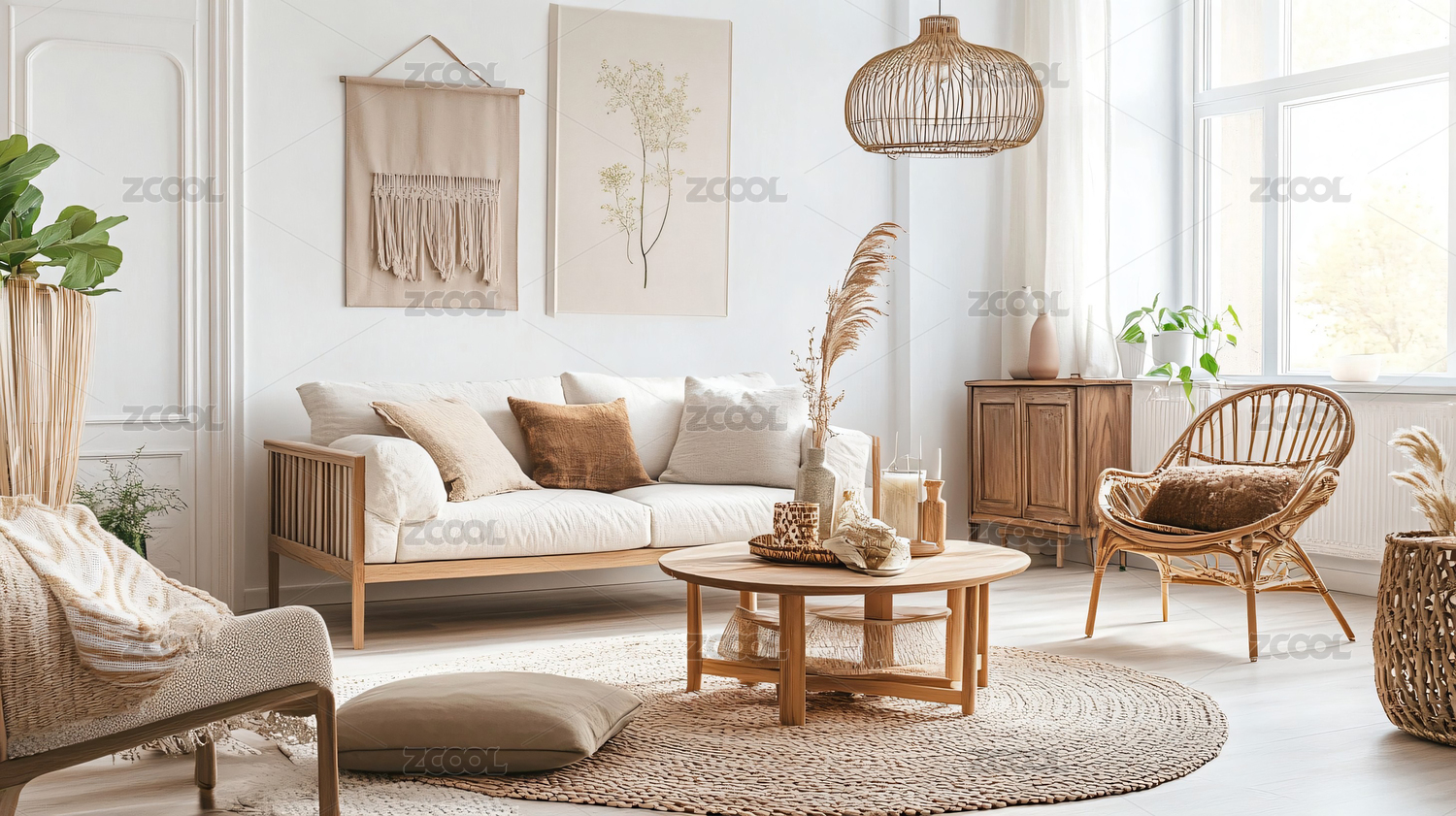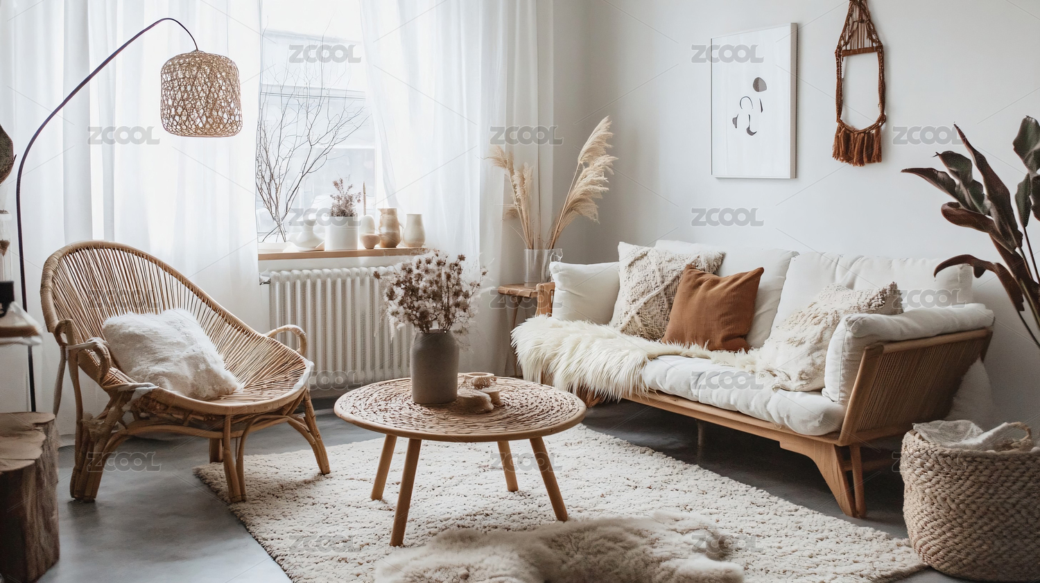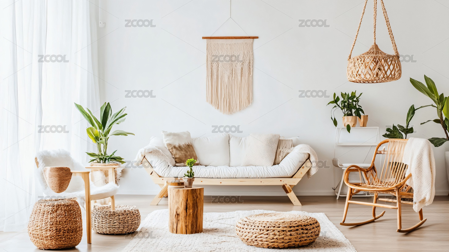 粗麻布家居沙发地毯等摆设的客厅空场景