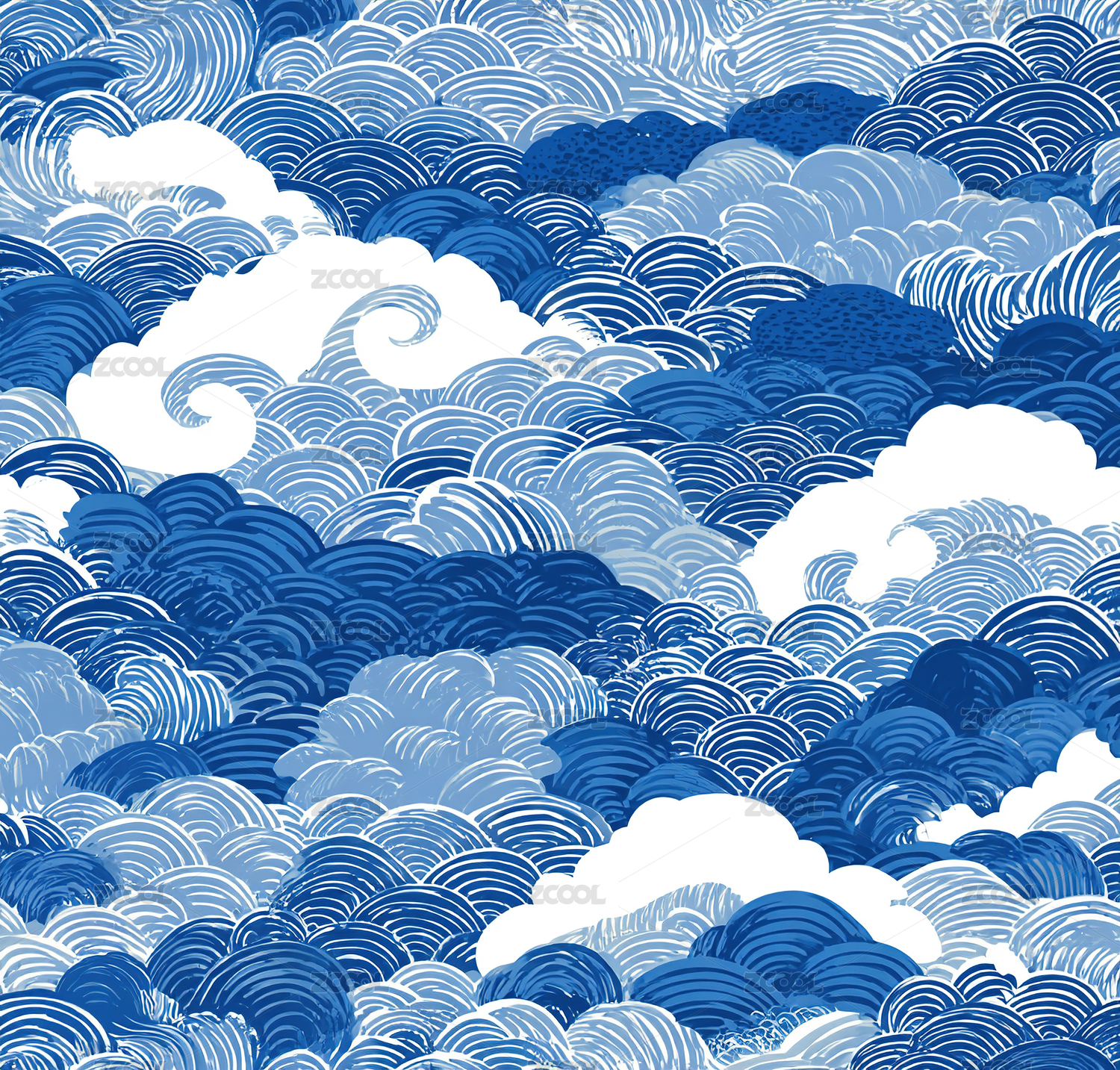 中国皇家服饰图案海水江崖波浪纹如意纹蓝底