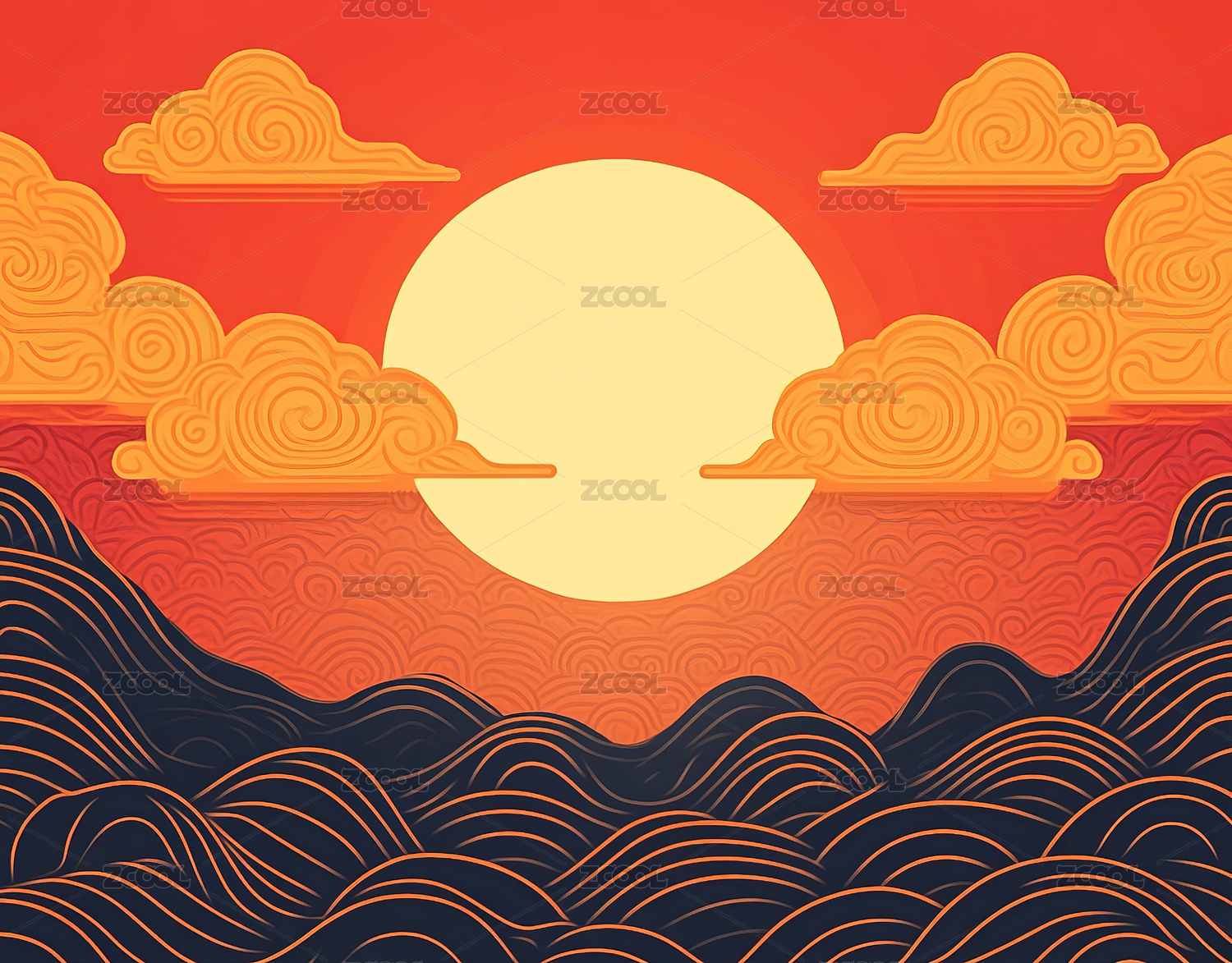 中国皇家服饰图案海水江崖波浪纹如意纹橙色