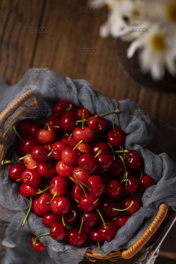 果篮里的樱桃水果暗调风格