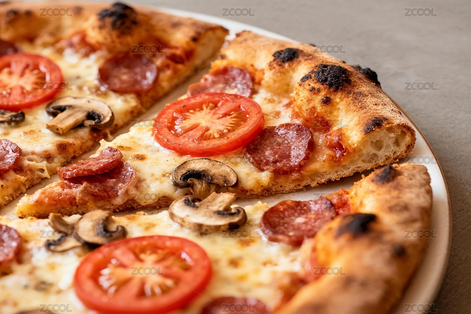 香肠蘑菇披萨特写