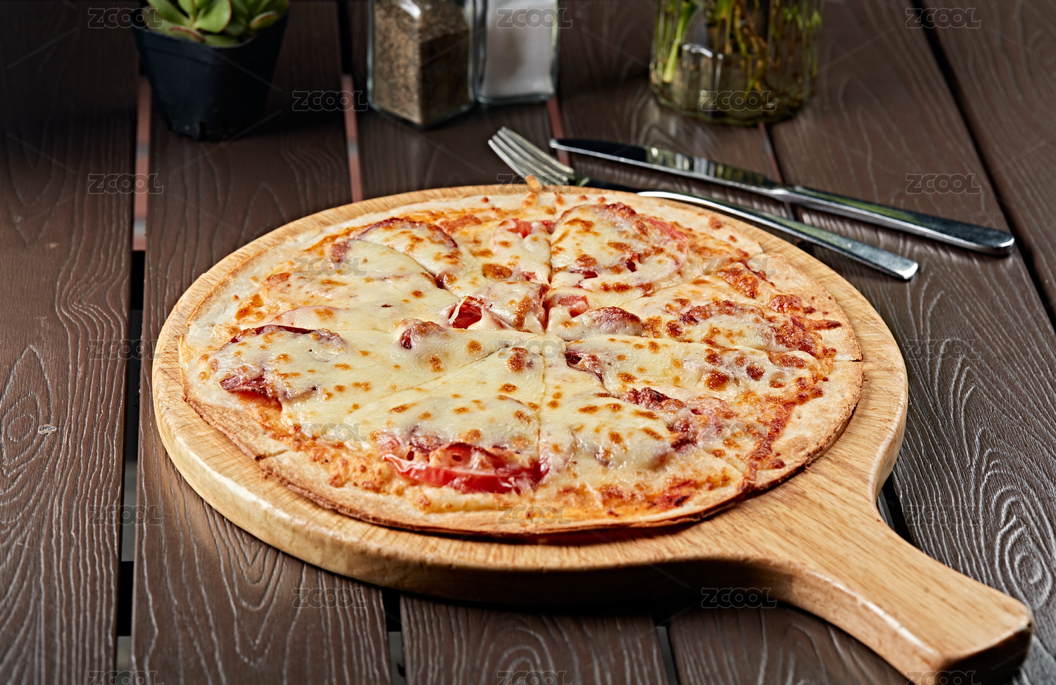 木桌上的美味披萨