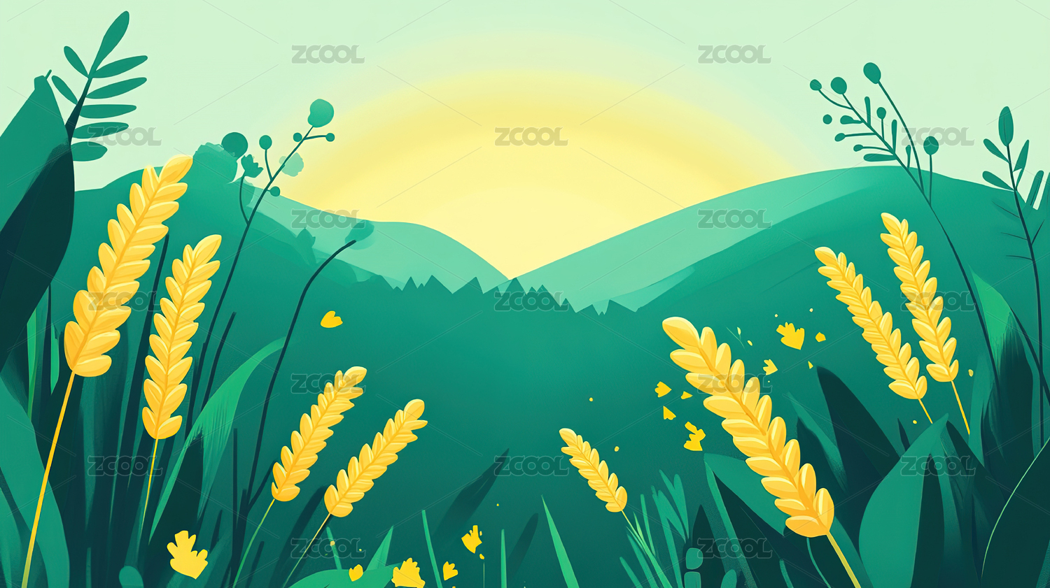 小满节气麦穗插画夏天麦田农业麦子成长海报