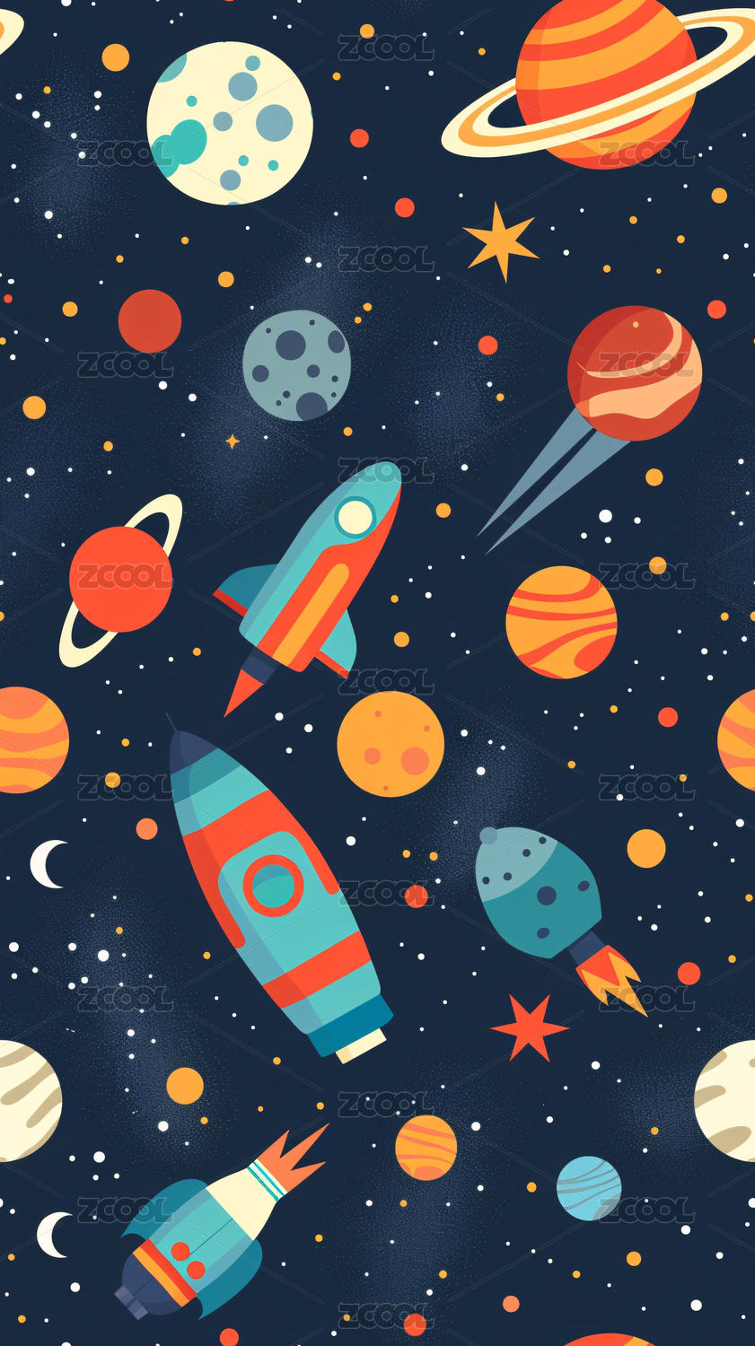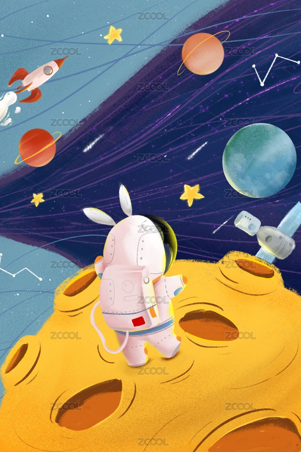 中秋节插画玉兔穿宇航服漂浮在太空手捧月饼