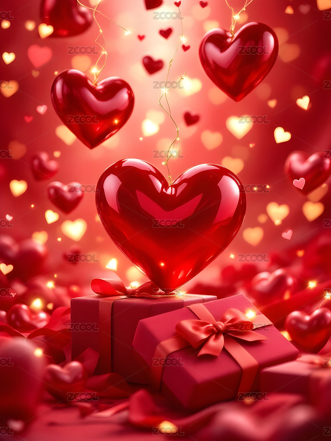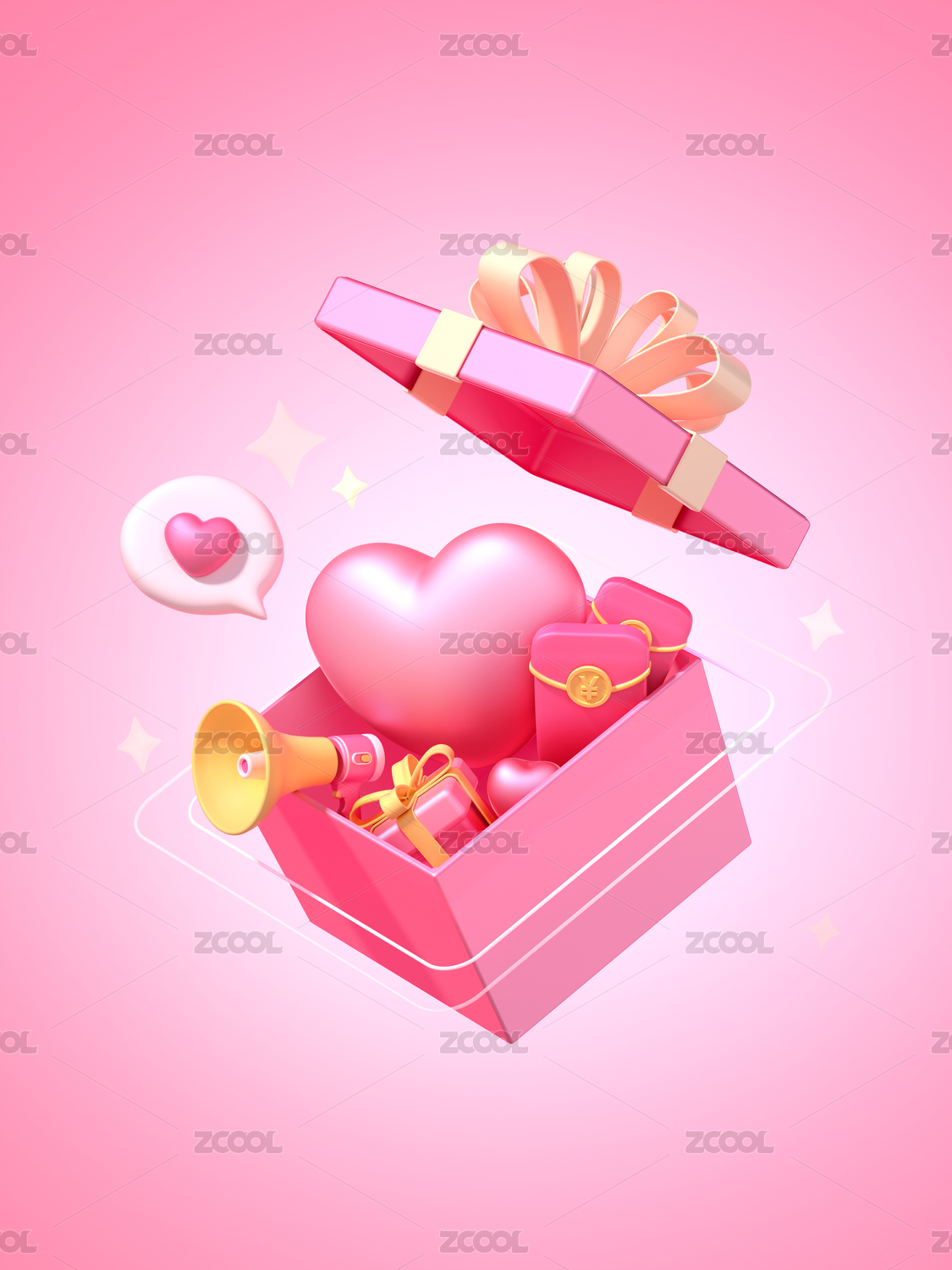 情人节,元素堆,爱心,心形,红心,悬浮,星星,礼盒,购物车,喇叭