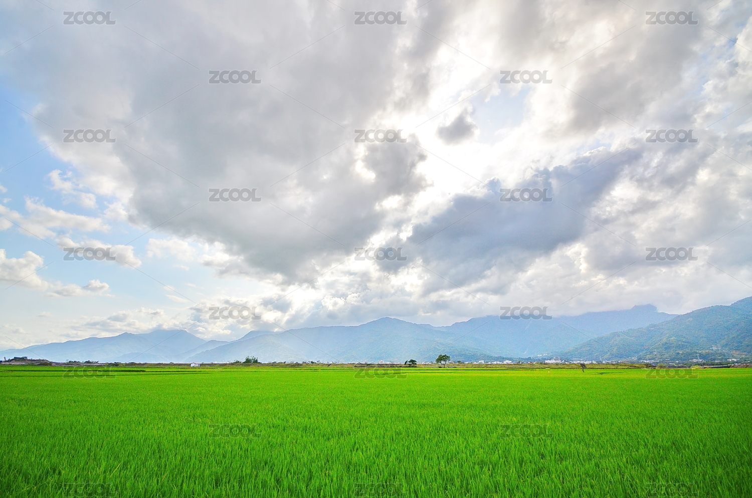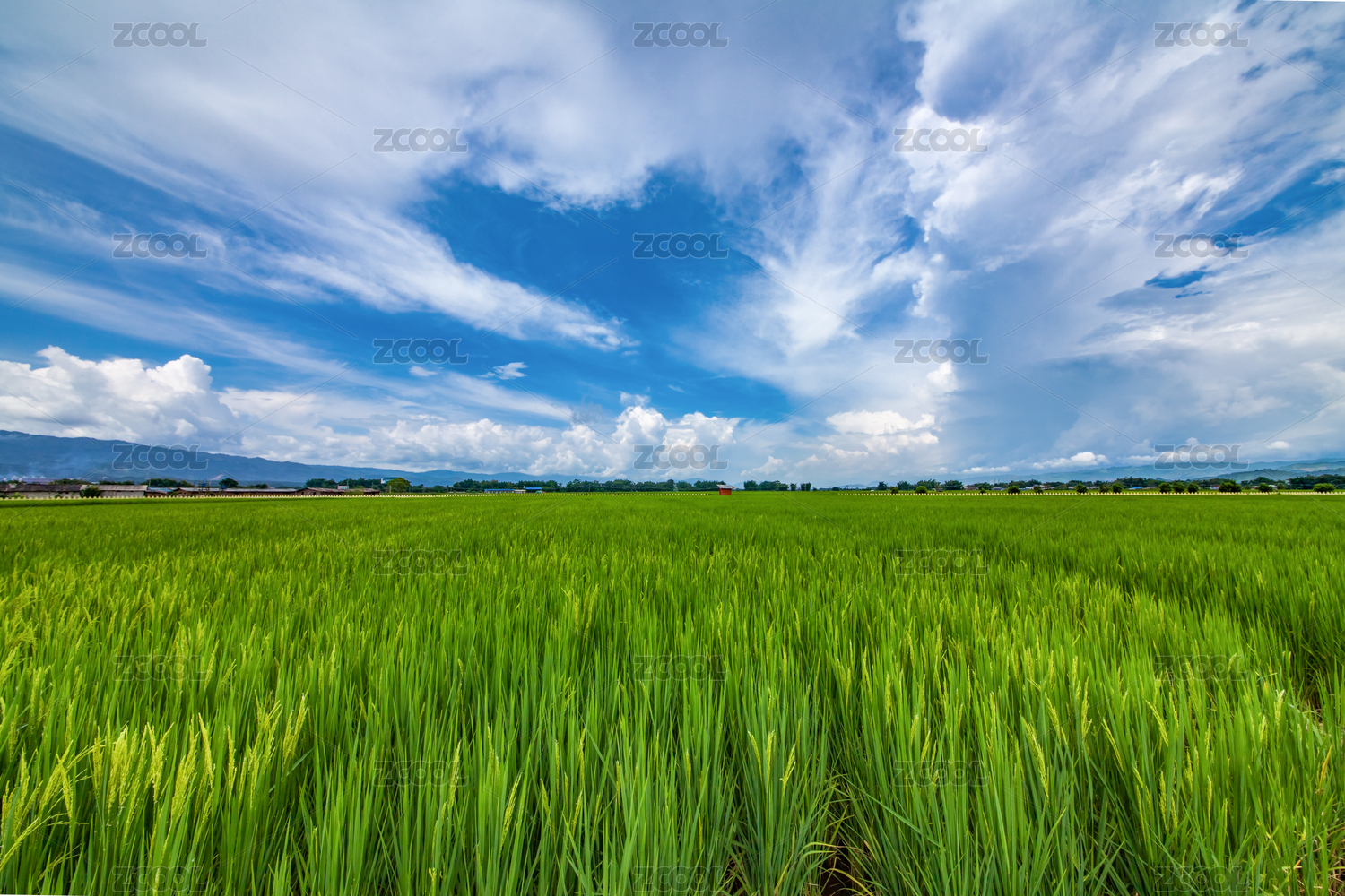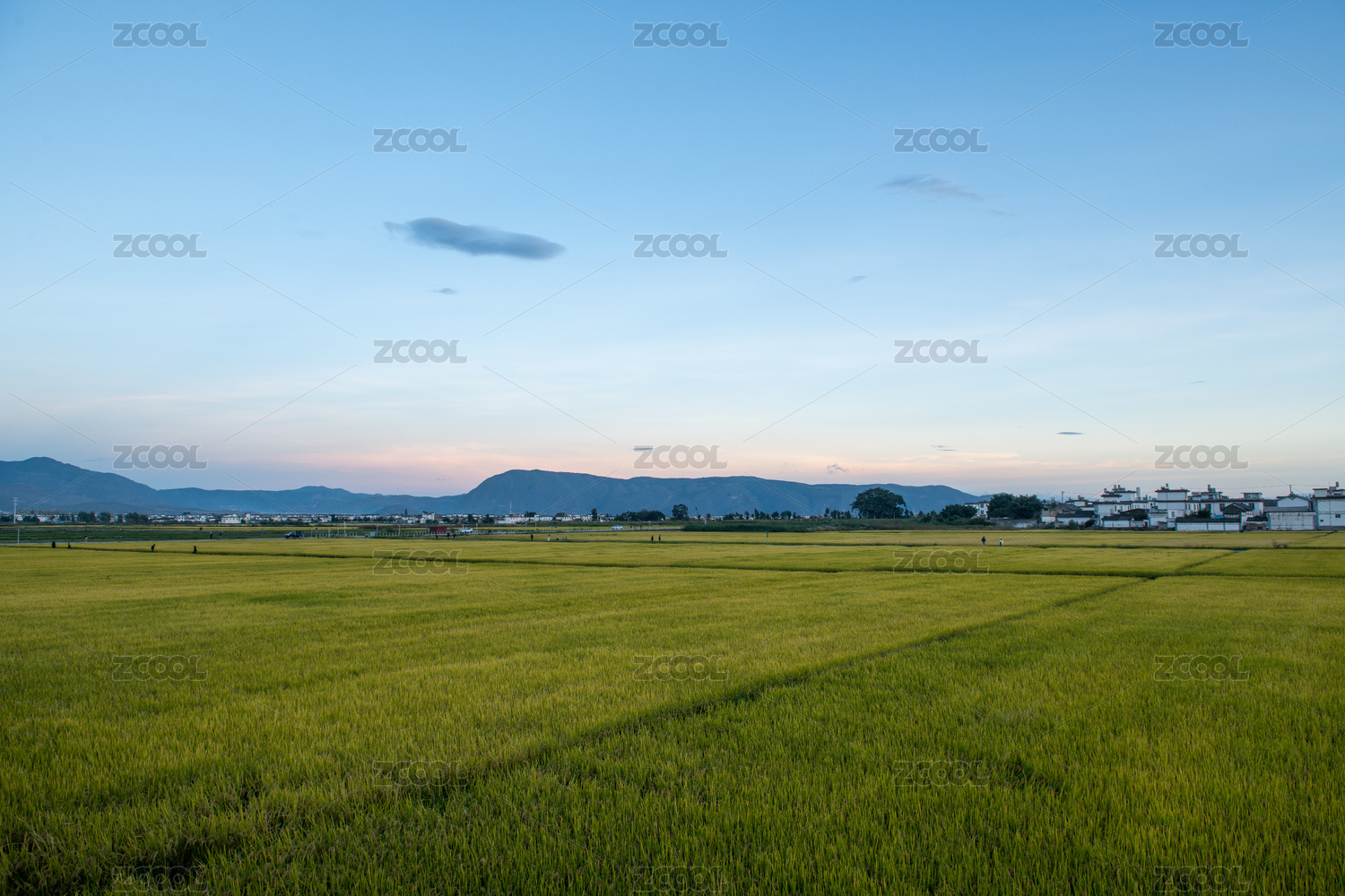 晚霞,日落,稻田,夕阳,戏剧性的天空,水稻,田园风光,风景优美的,彩色图片,蓝色