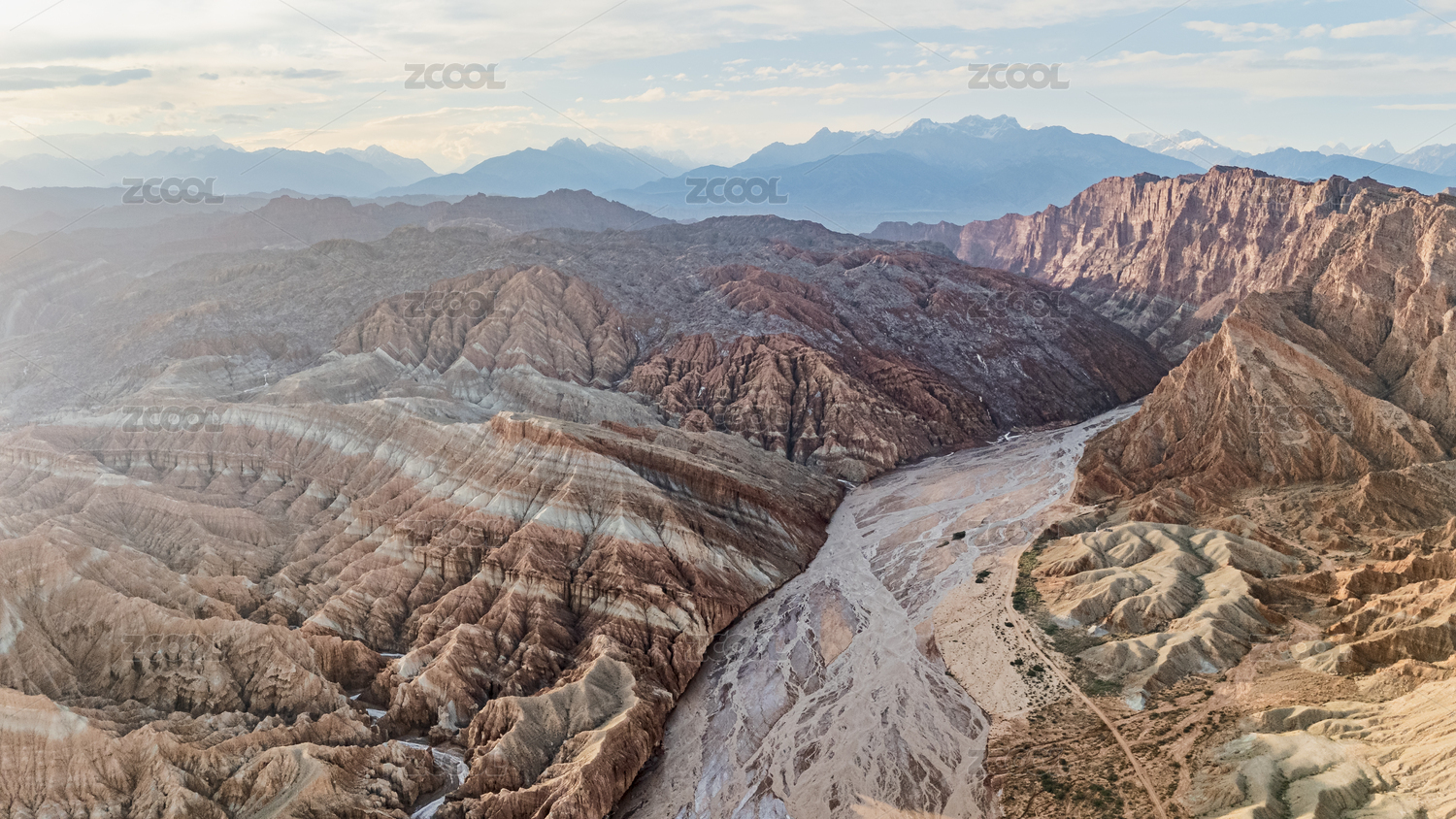 中国新疆温宿大峡谷天山托木尔峰航拍