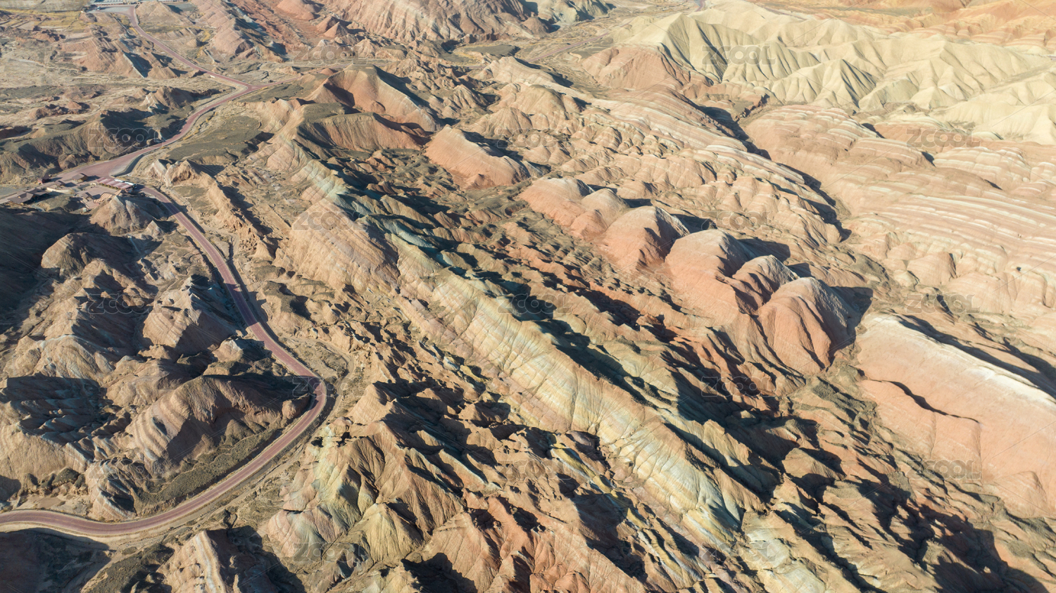 航拍中国甘肃省张掖市七彩丹霞地貌景观