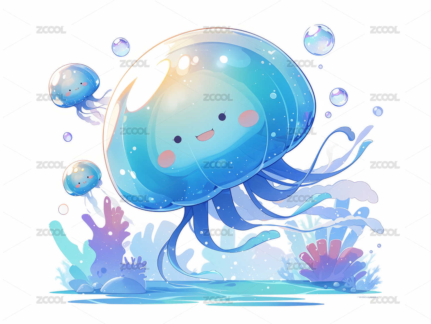 卡通水母梦幻感海底场景