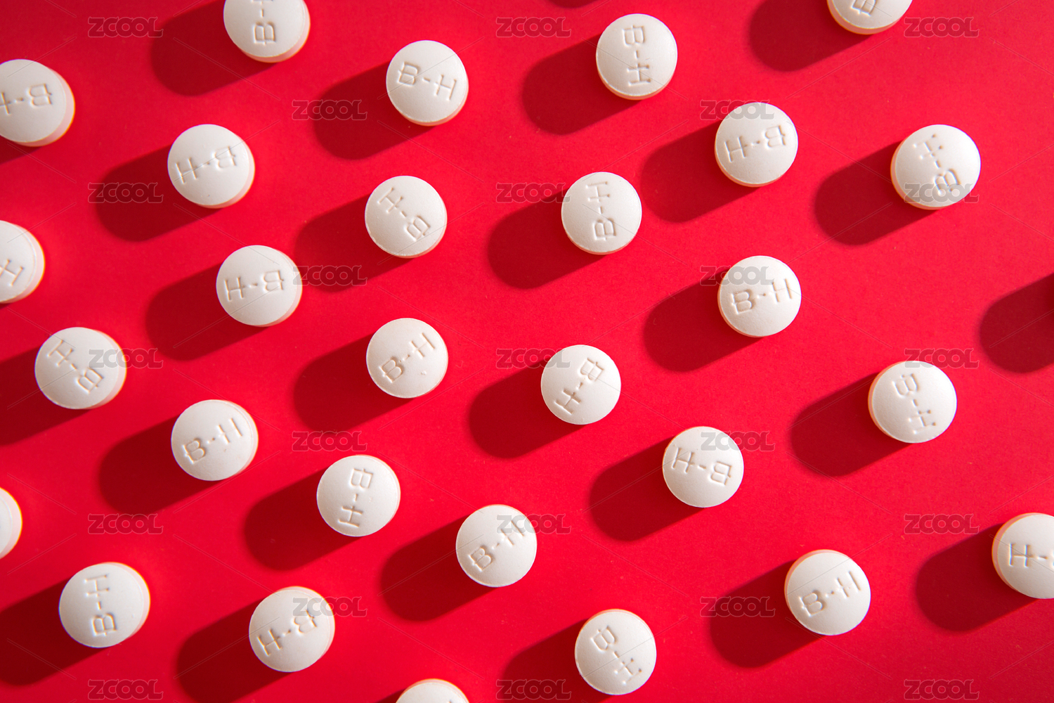 白色药片整齐排列在红色背景