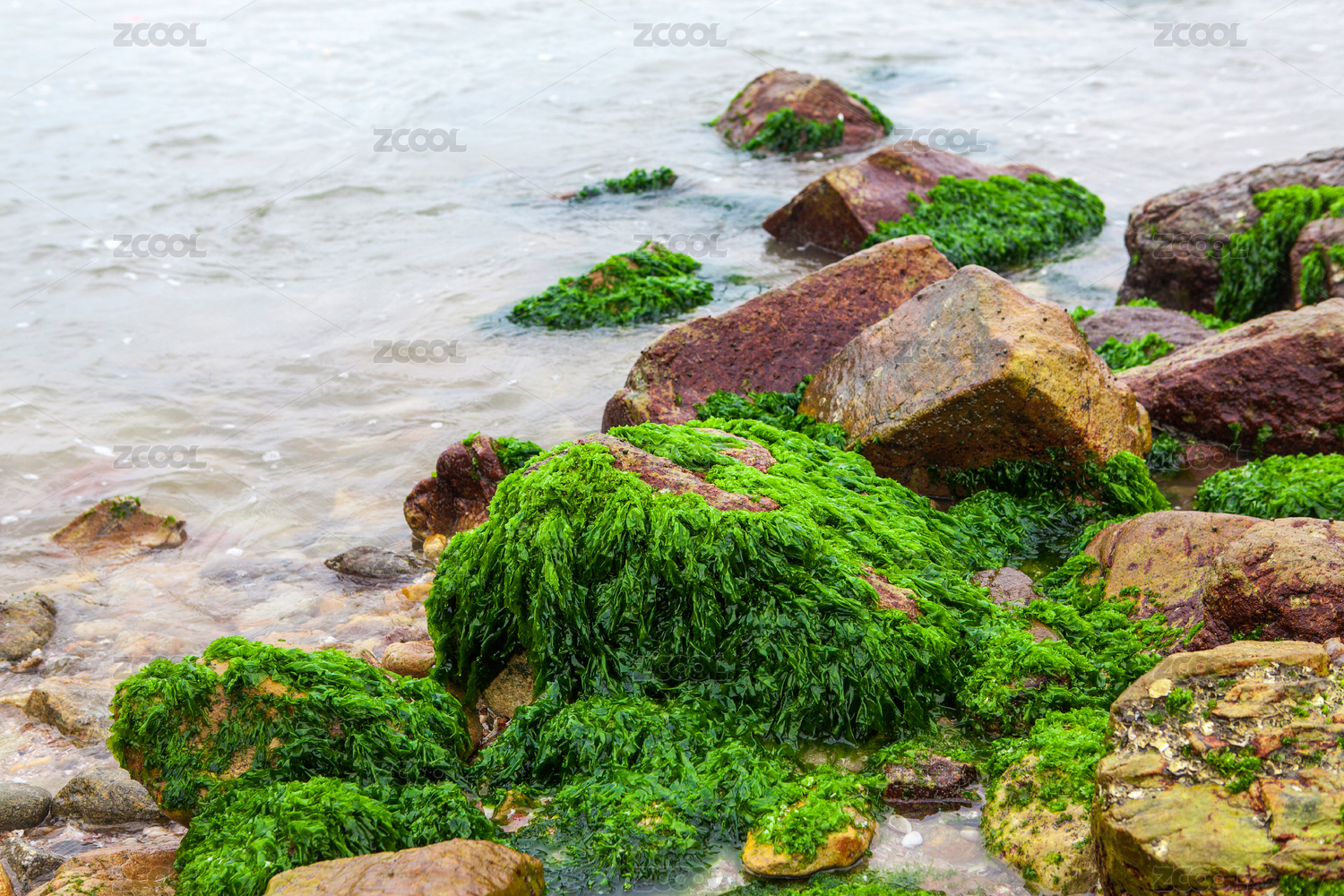 海边,海水,绿色,生长,时间,周期,海藻,藻类,植物,海带