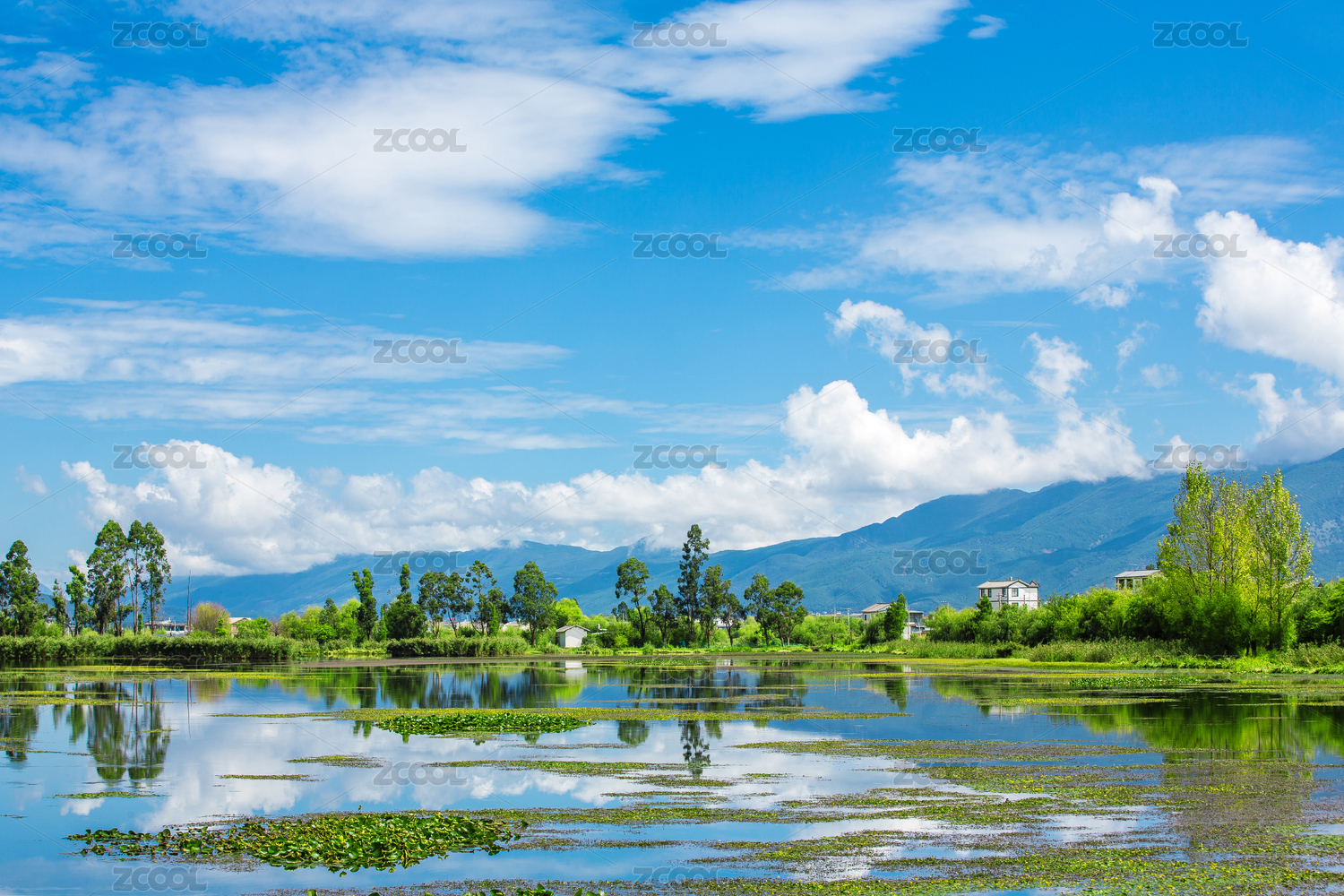 中国云南省大理三圣岛洱海生态廊道旁的村庄