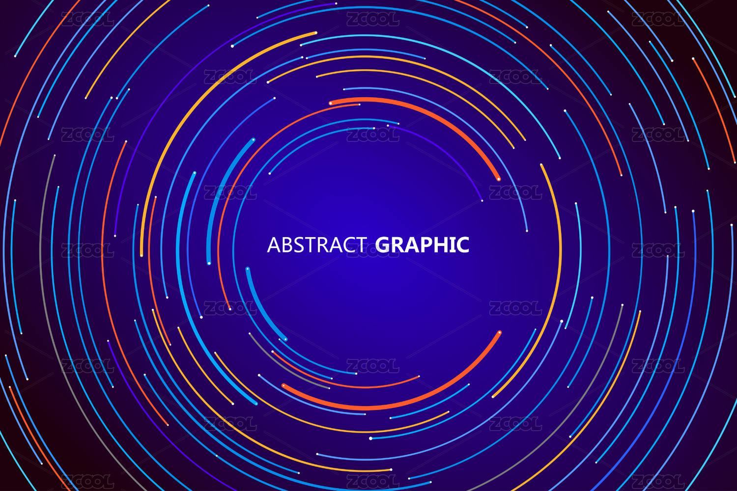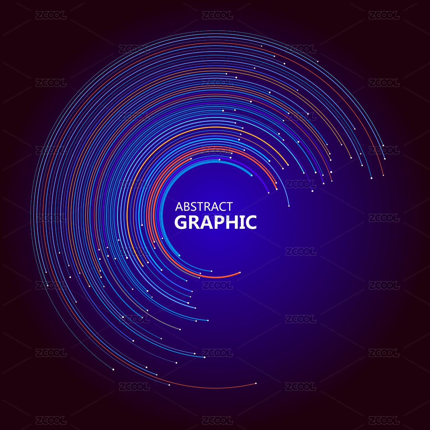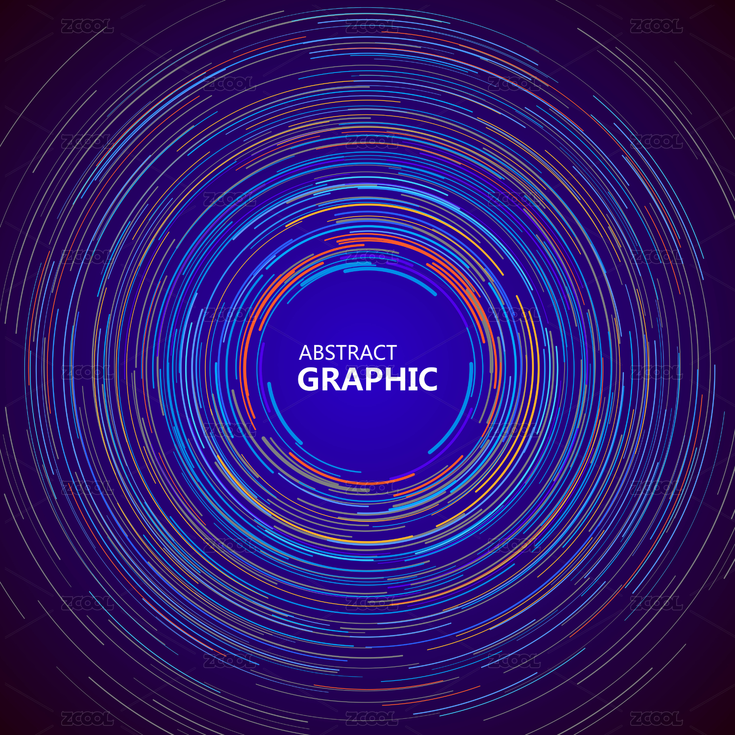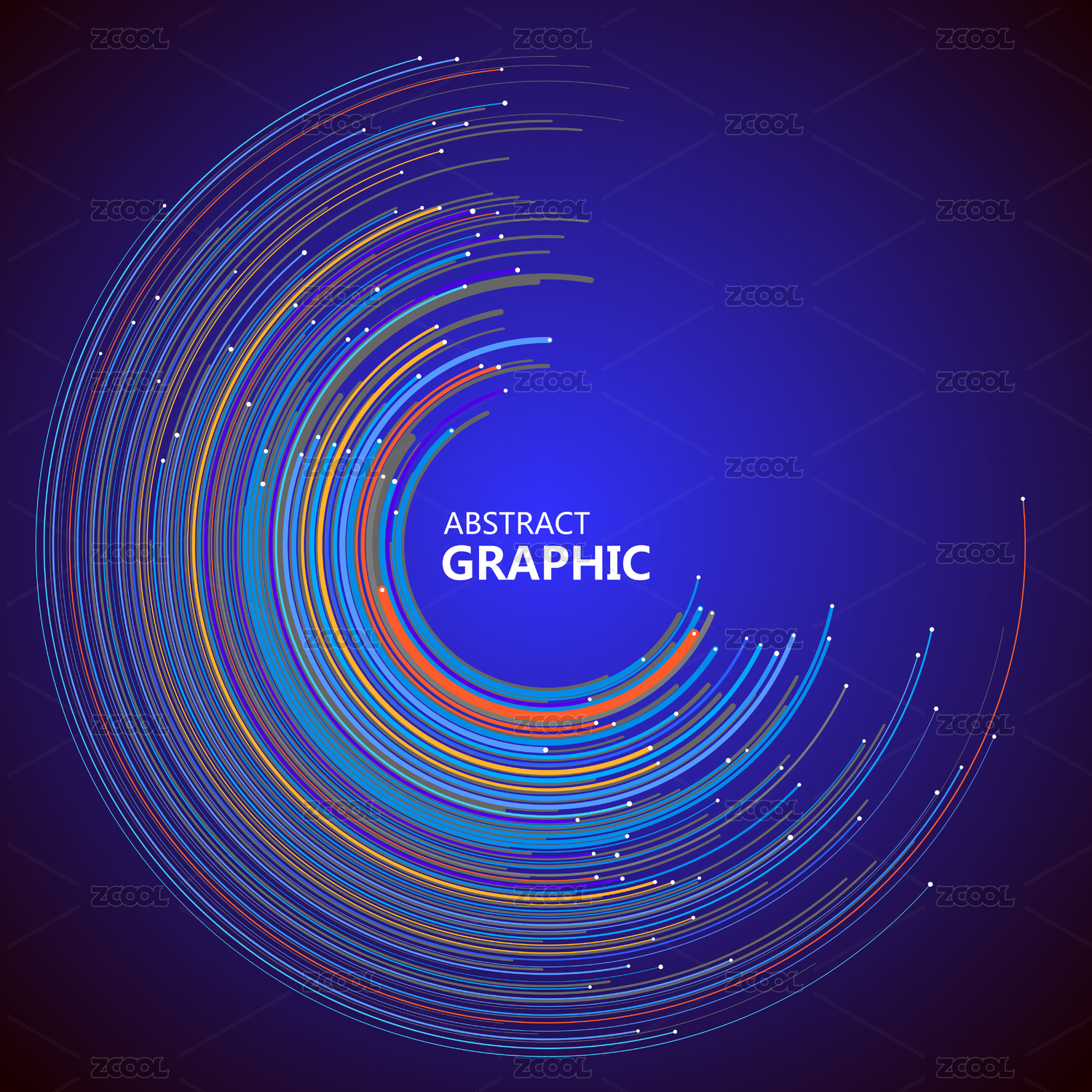 抽象圆圈、彩色线条组成的圆圈、抽象夜空、蓝色抽象空间图。