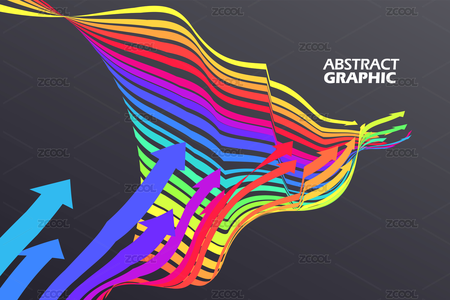 彩色动感线条、透视图形、彩色丝带、矢量流线图、海报背景图。