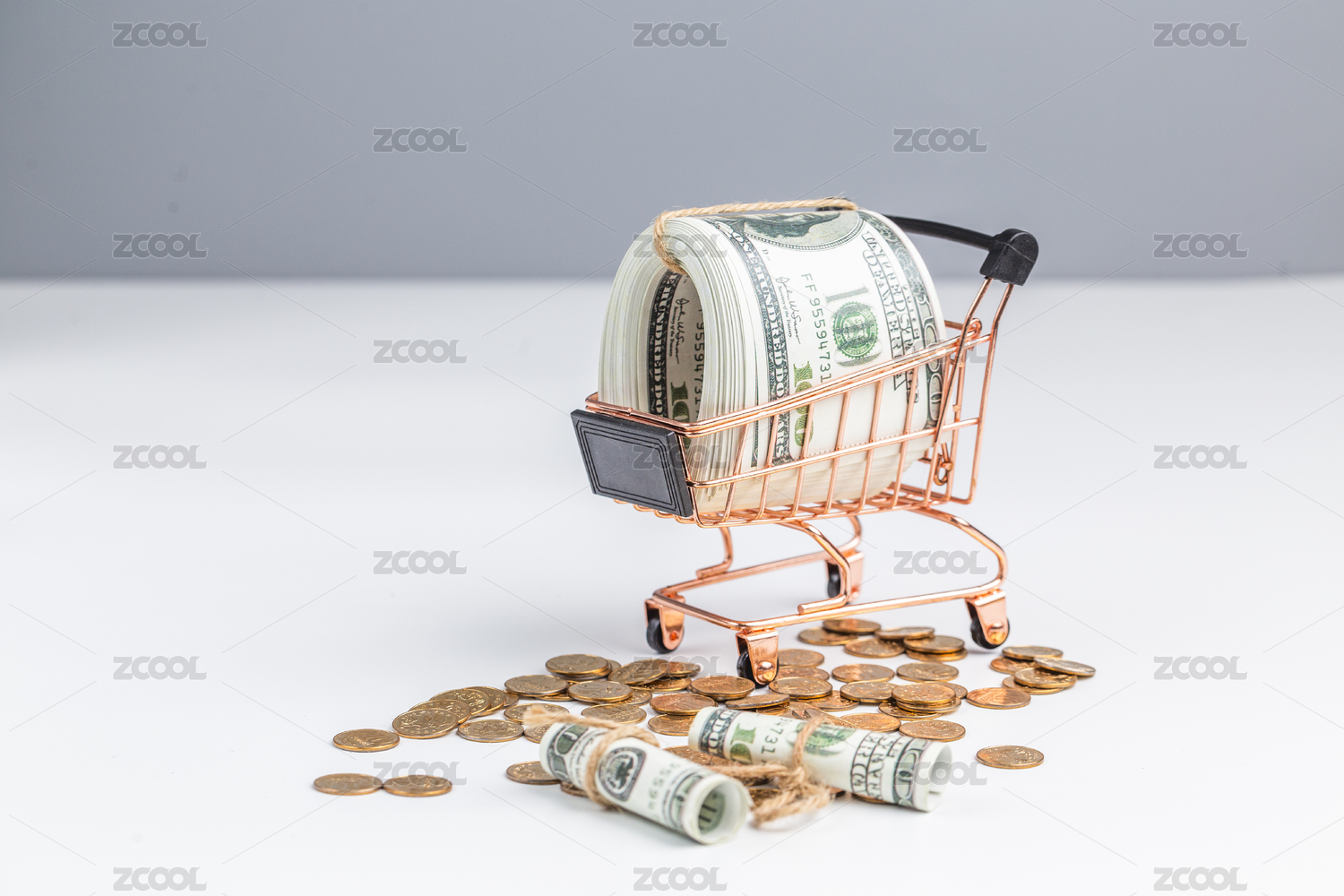 购物车,购物,购买,花费,消费,花钱,美元,美金,钞票,票子