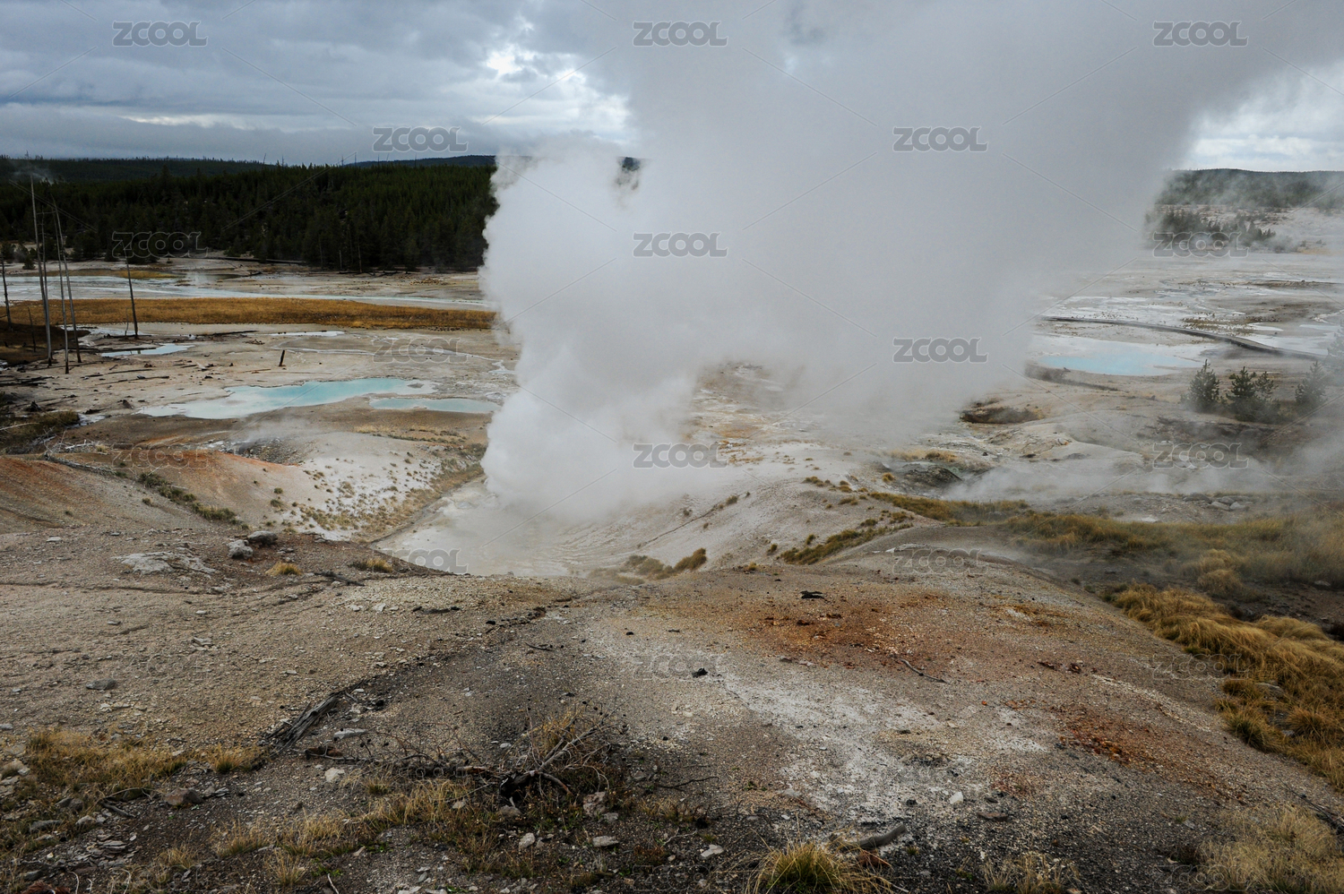 美国黄石国家公园的下间歇泉盆地的自然风光