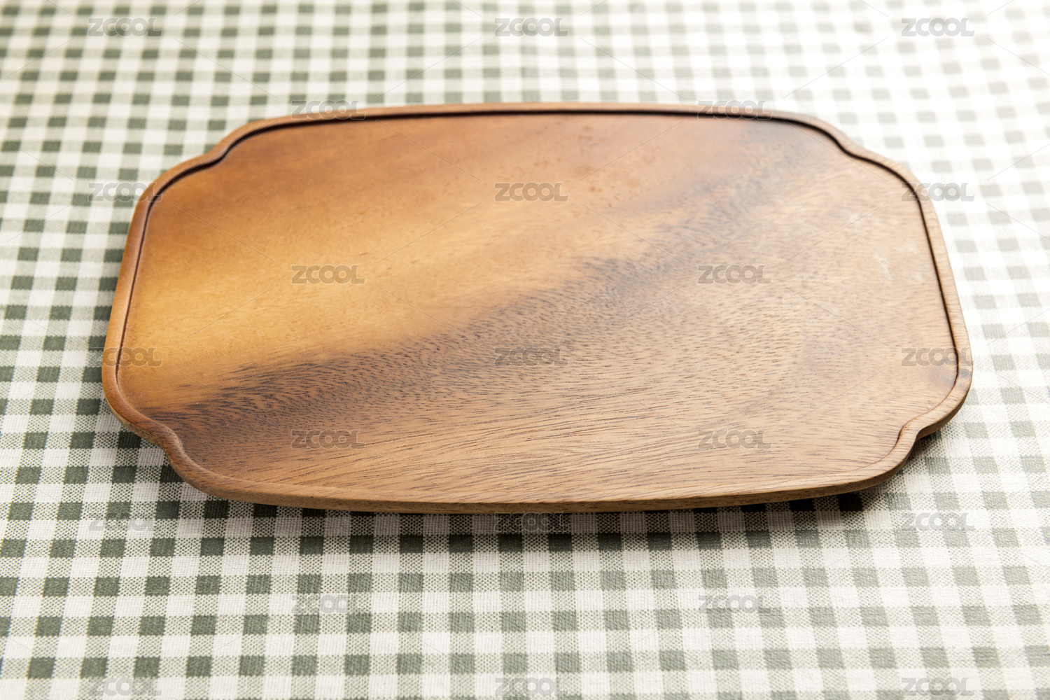 仿古中式木质茶盘托盘摆放在桌面上特写