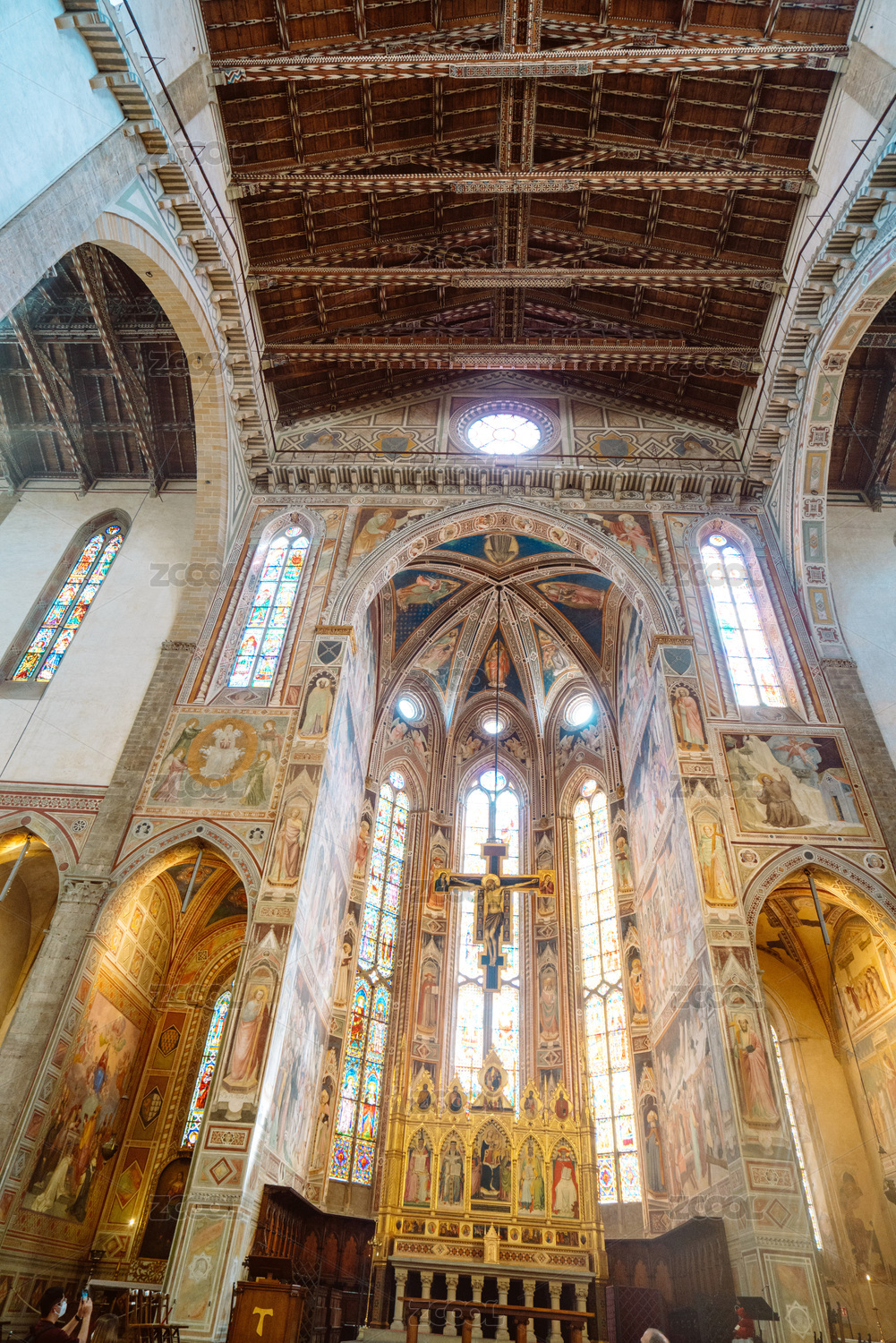 广州石室圣心大教堂内部大厅和彩绘玻璃