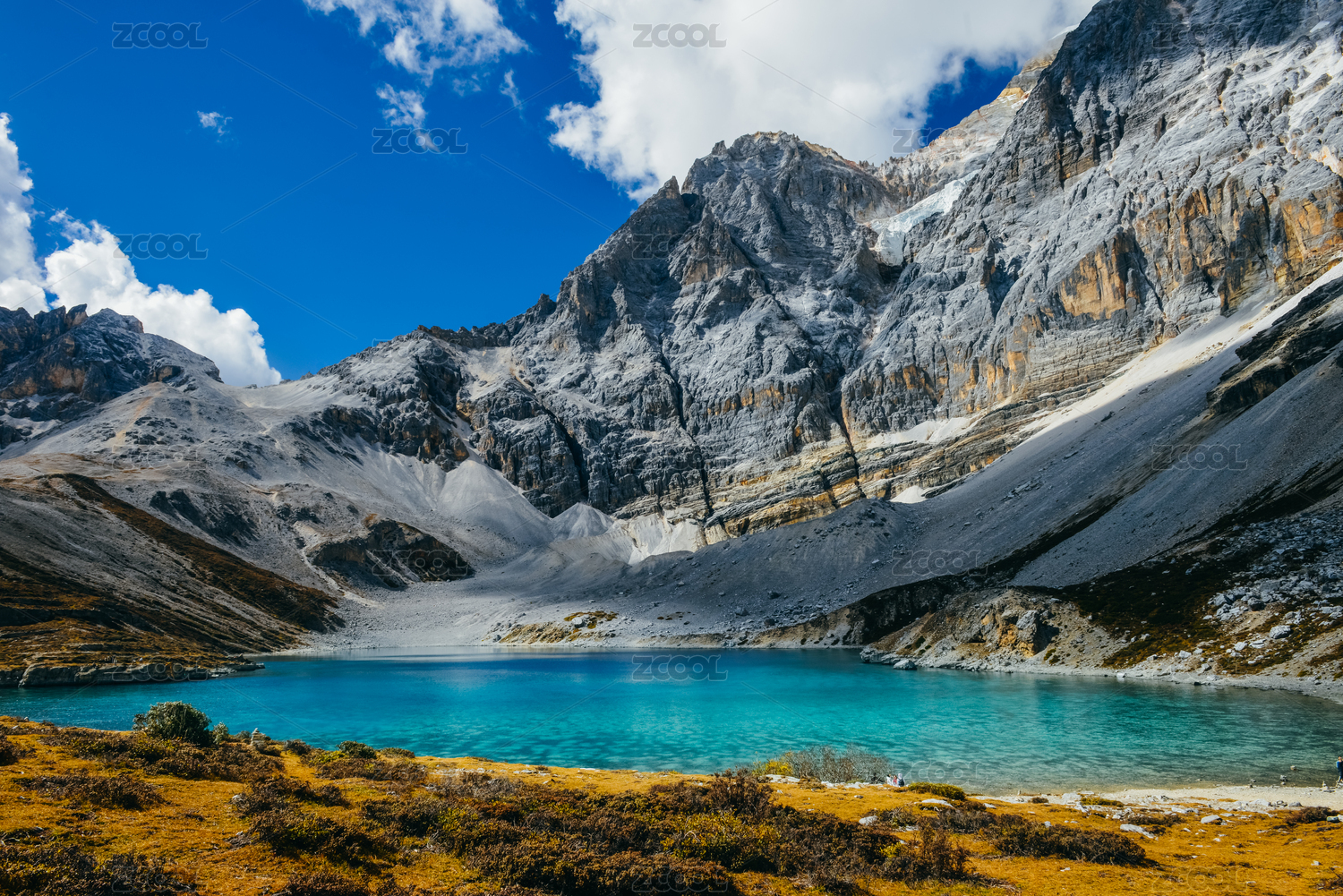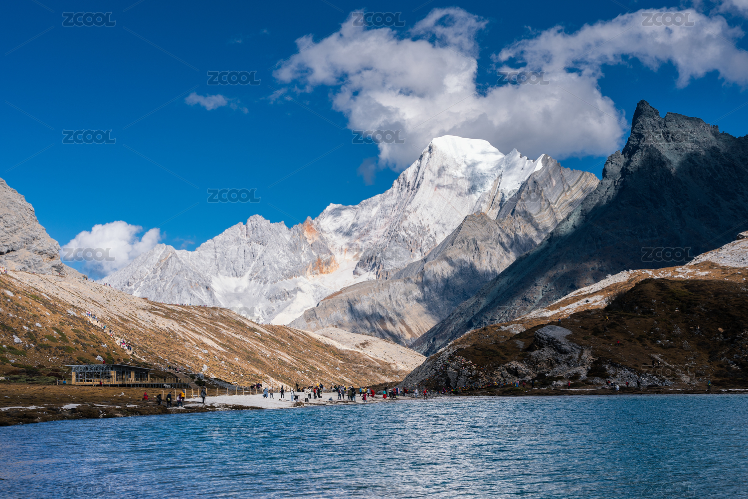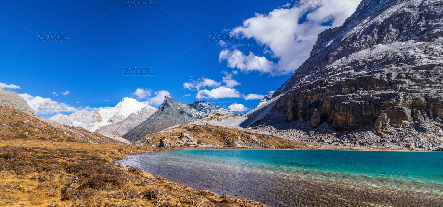川西稻城亚丁的圣湖五色海在秋季的风景