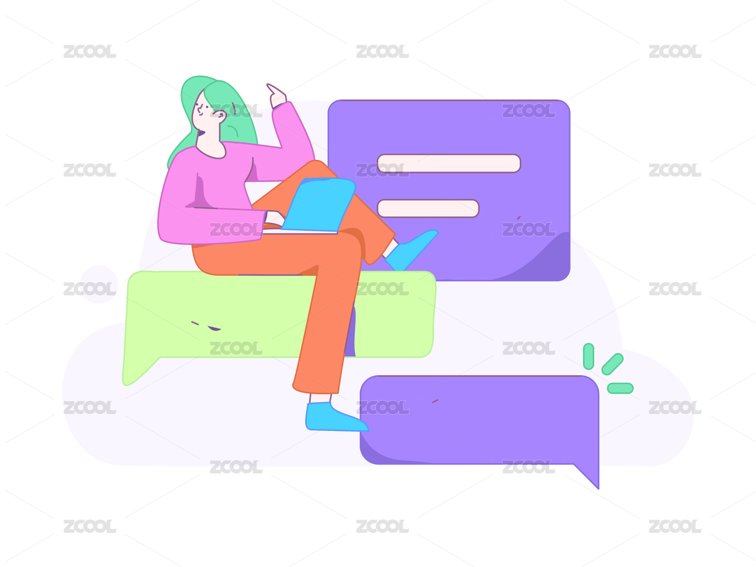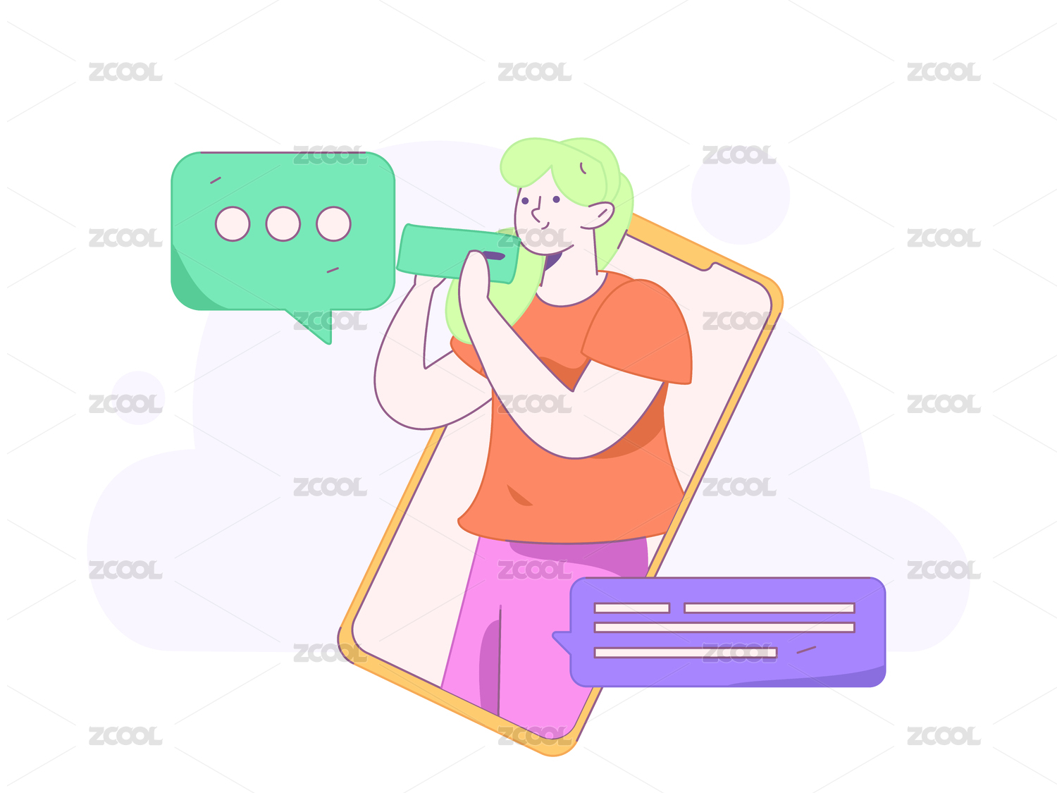 虚拟的人物社交沟通概念商业扁平矢量手绘插