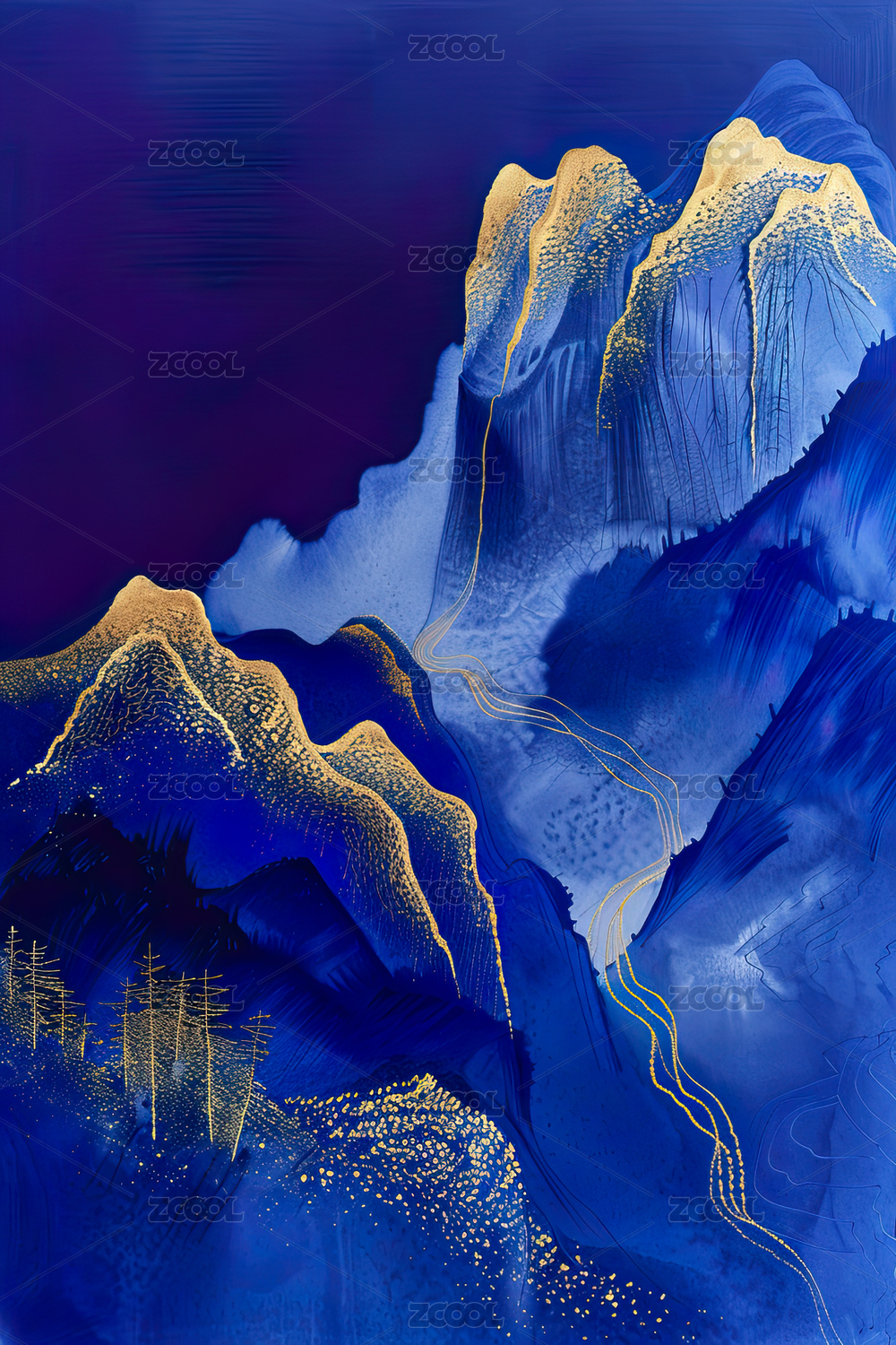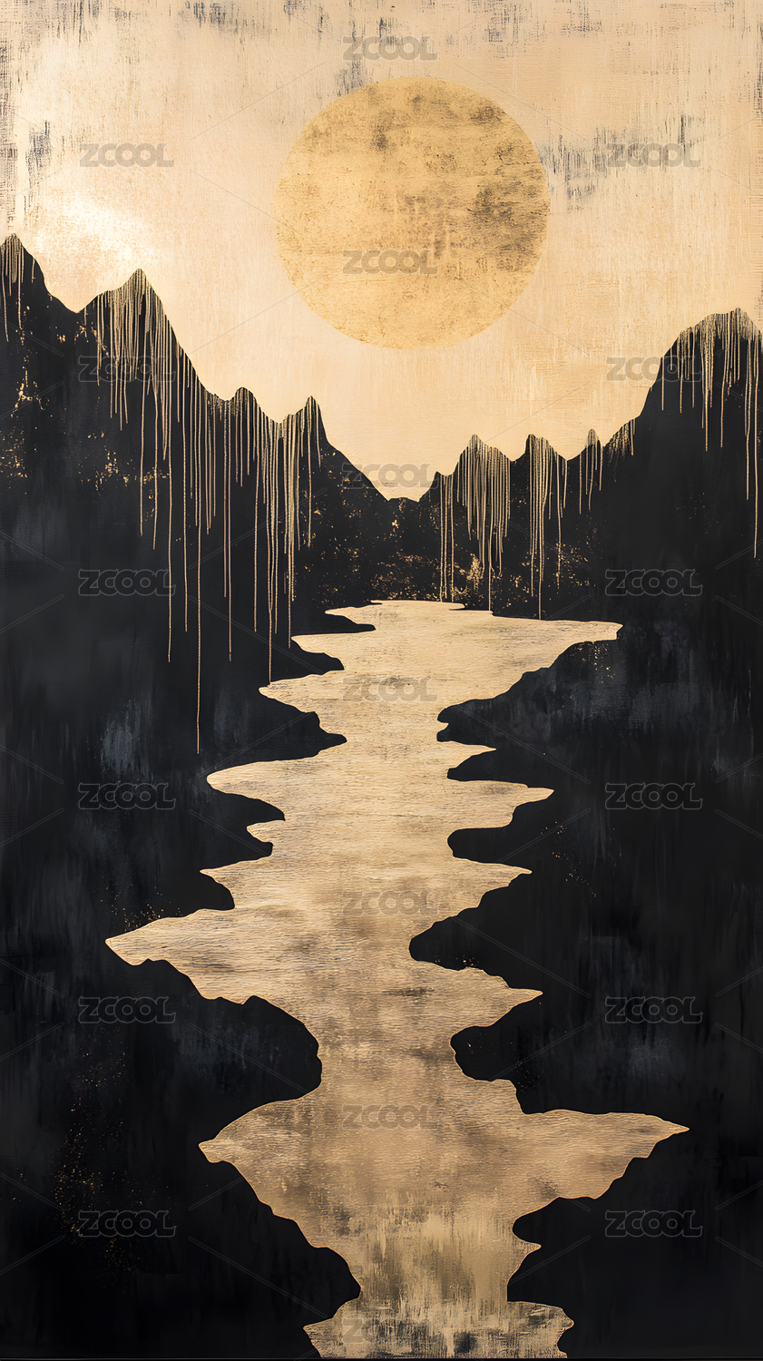 黑金中式山水背景,水墨创意山水画
