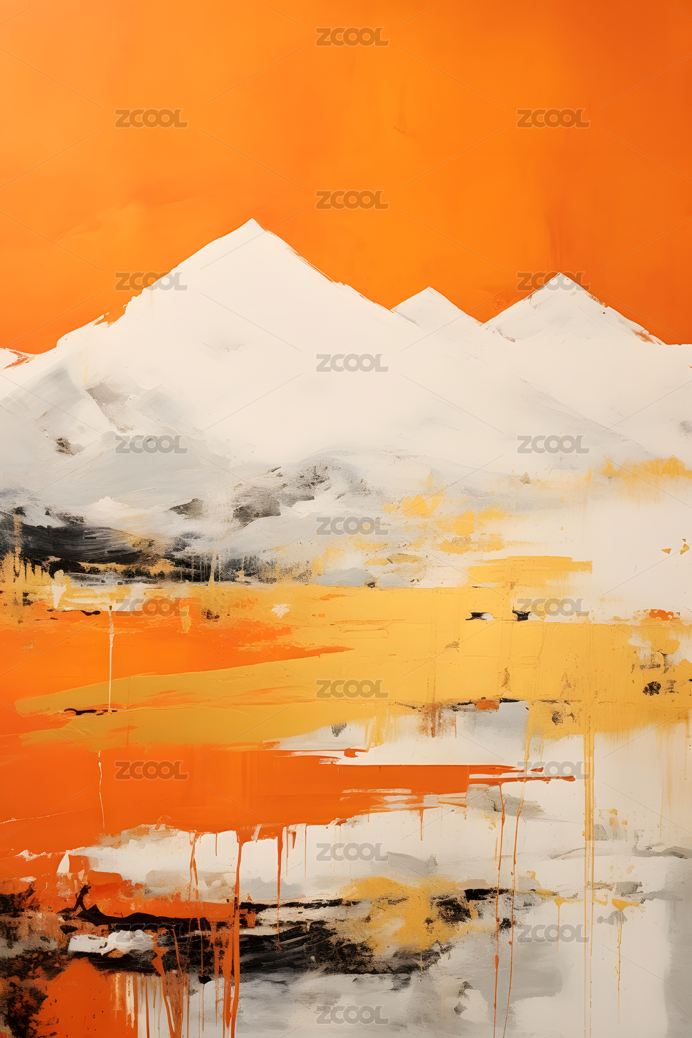 极简主义橘色山水田园抽象装饰画
