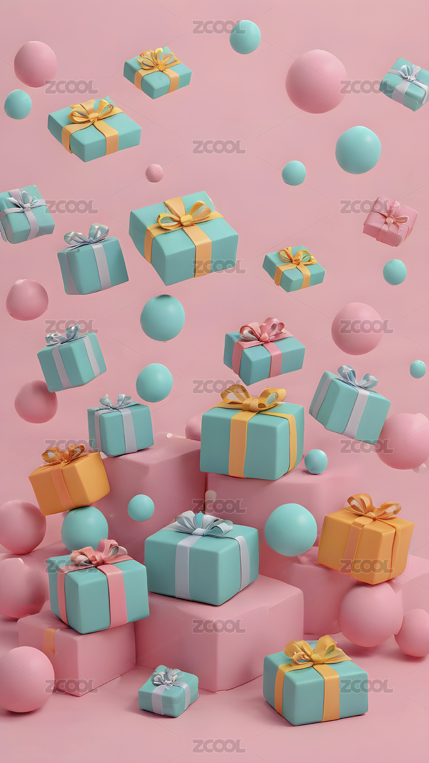 礼物,三维图形,插画,庆祝,购物,节日,电子商务,包装纸,红色