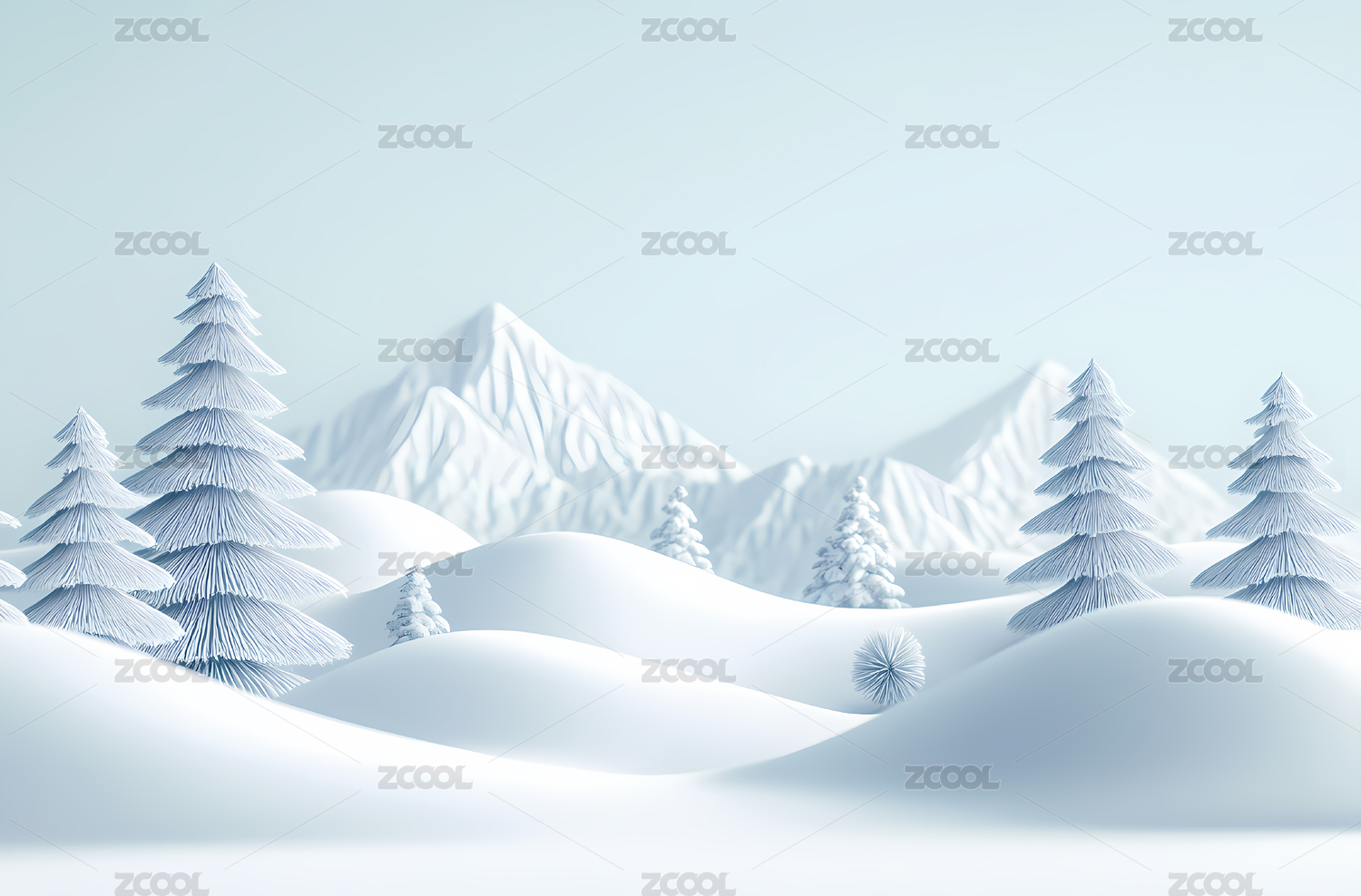 圣诞节3D纸艺雪山与悬挂装饰插图