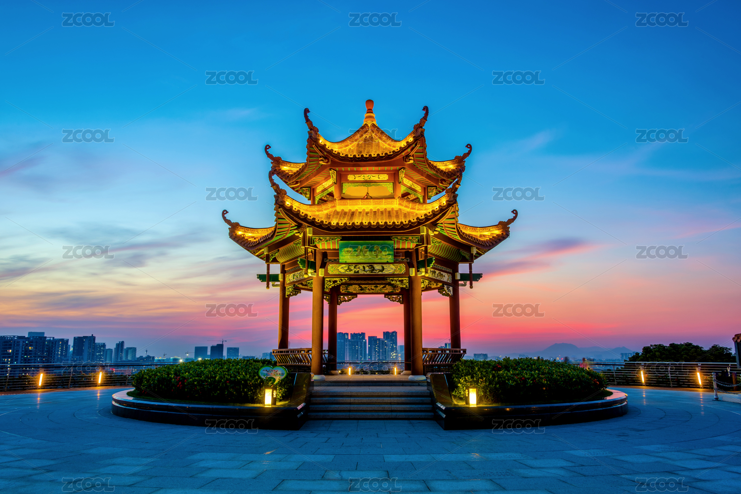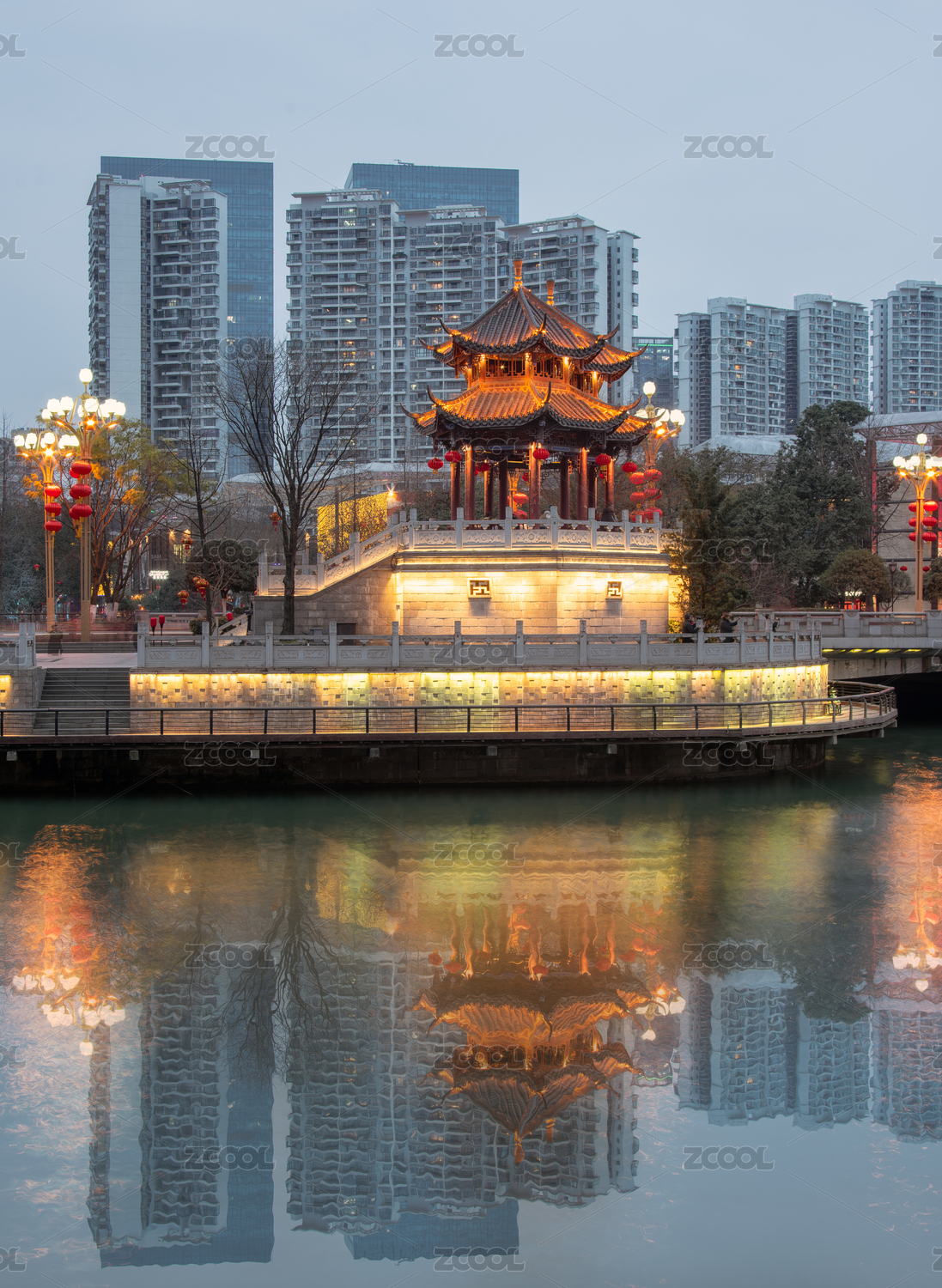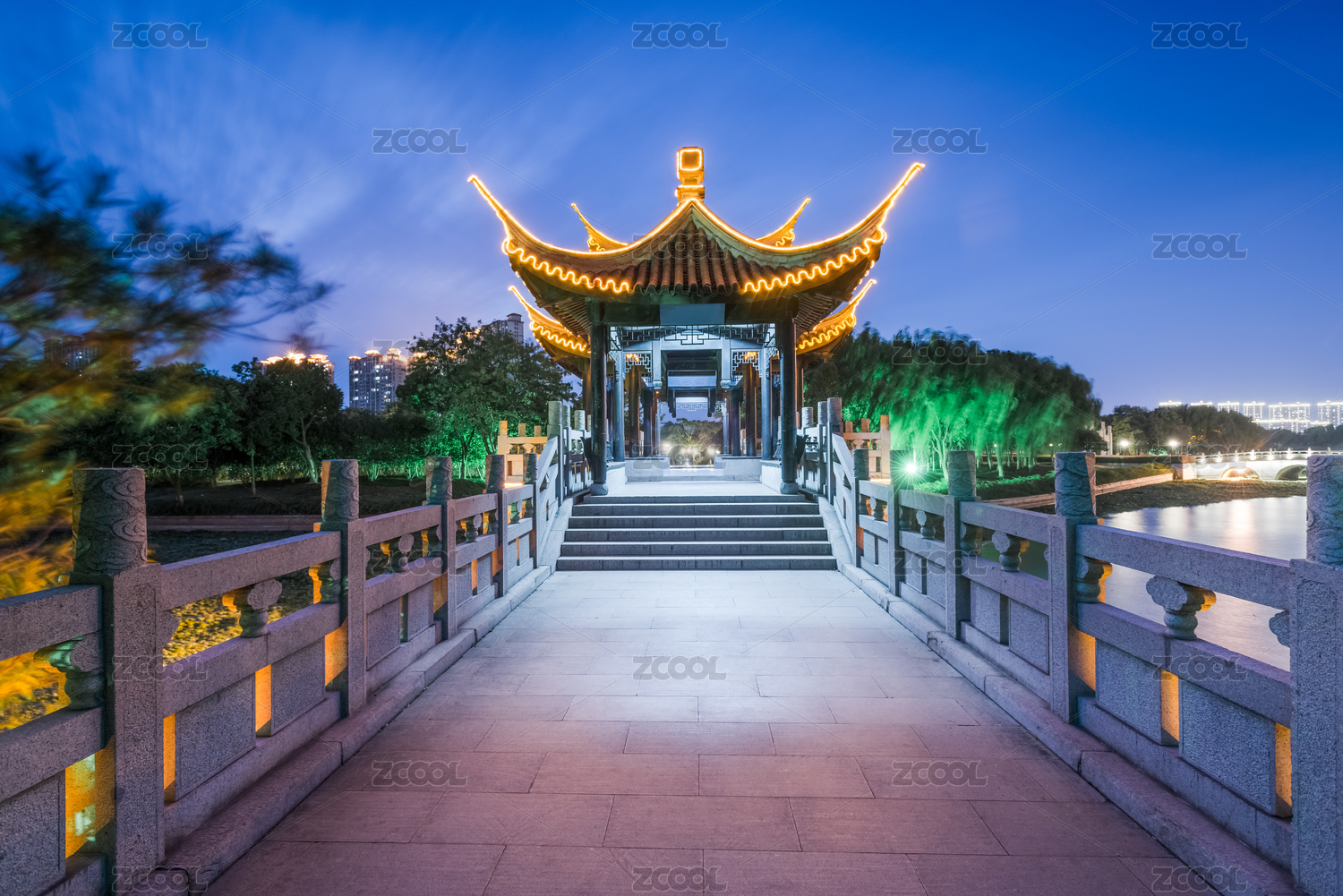 中国浙江杭州上城区丁桥桃花湖公园夜景