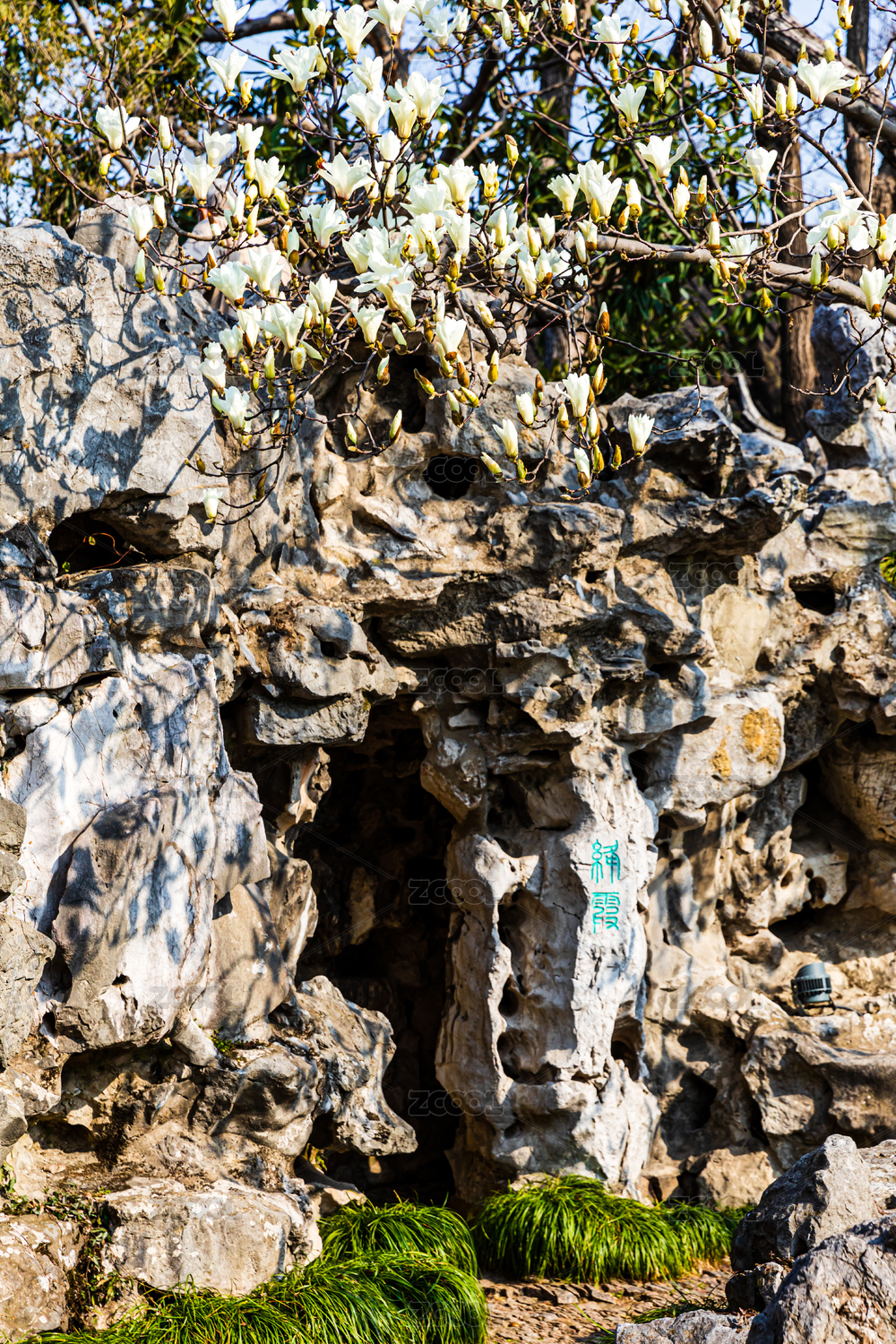 中国江苏苏州园林怡园春天玉兰花开