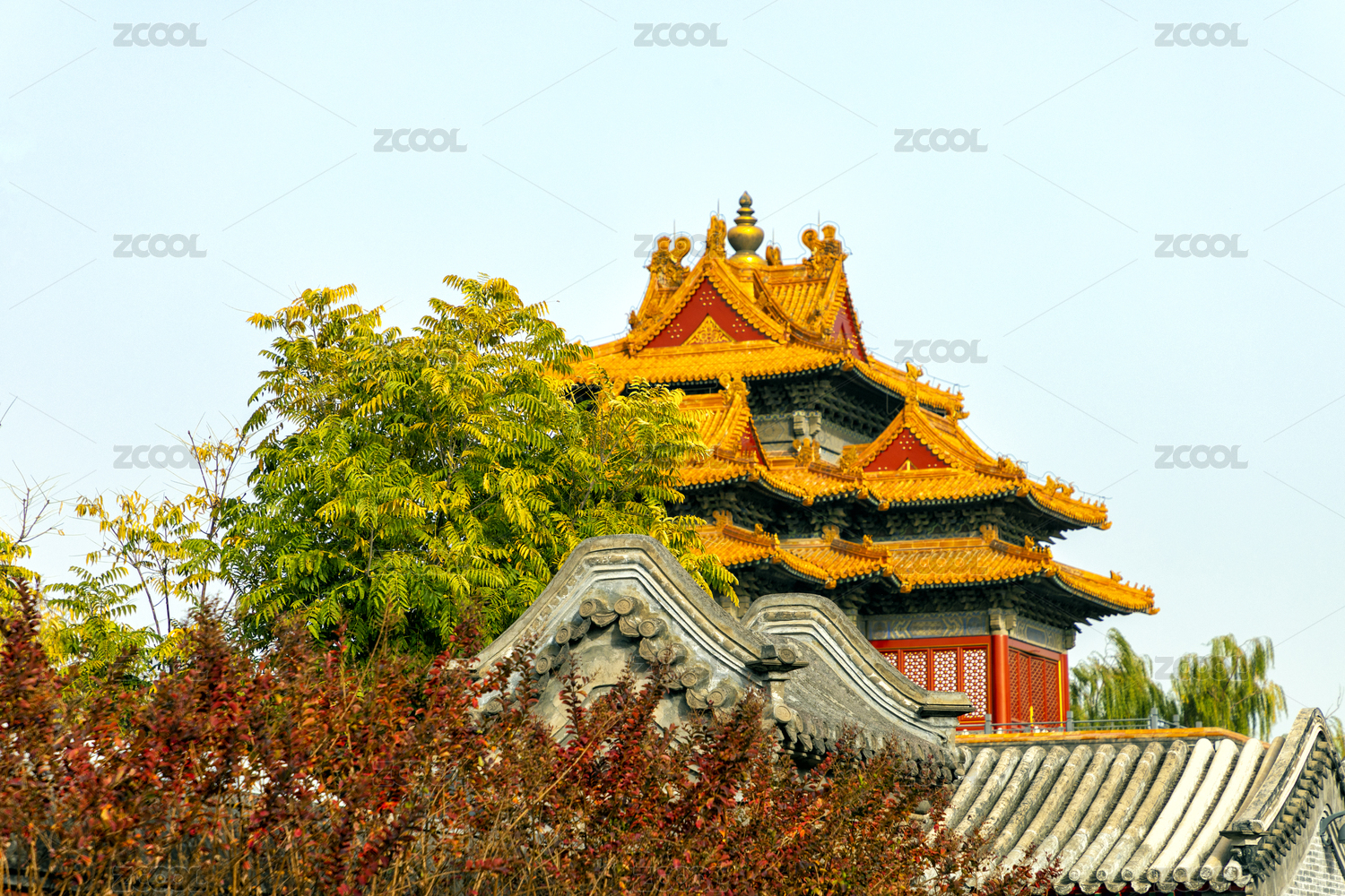 秋天景山公园古建筑风光