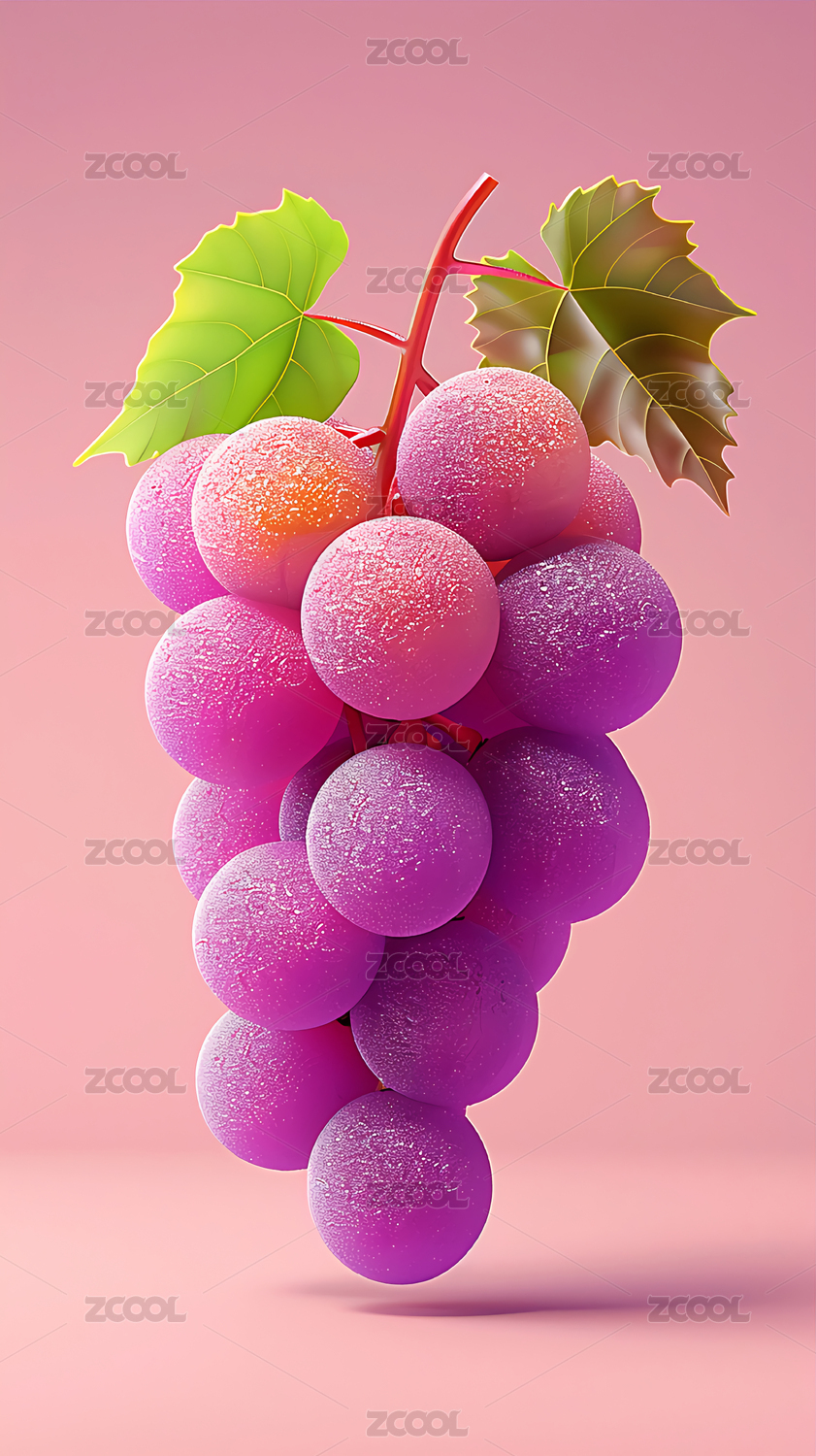 毛绒紫葡萄粉色背景