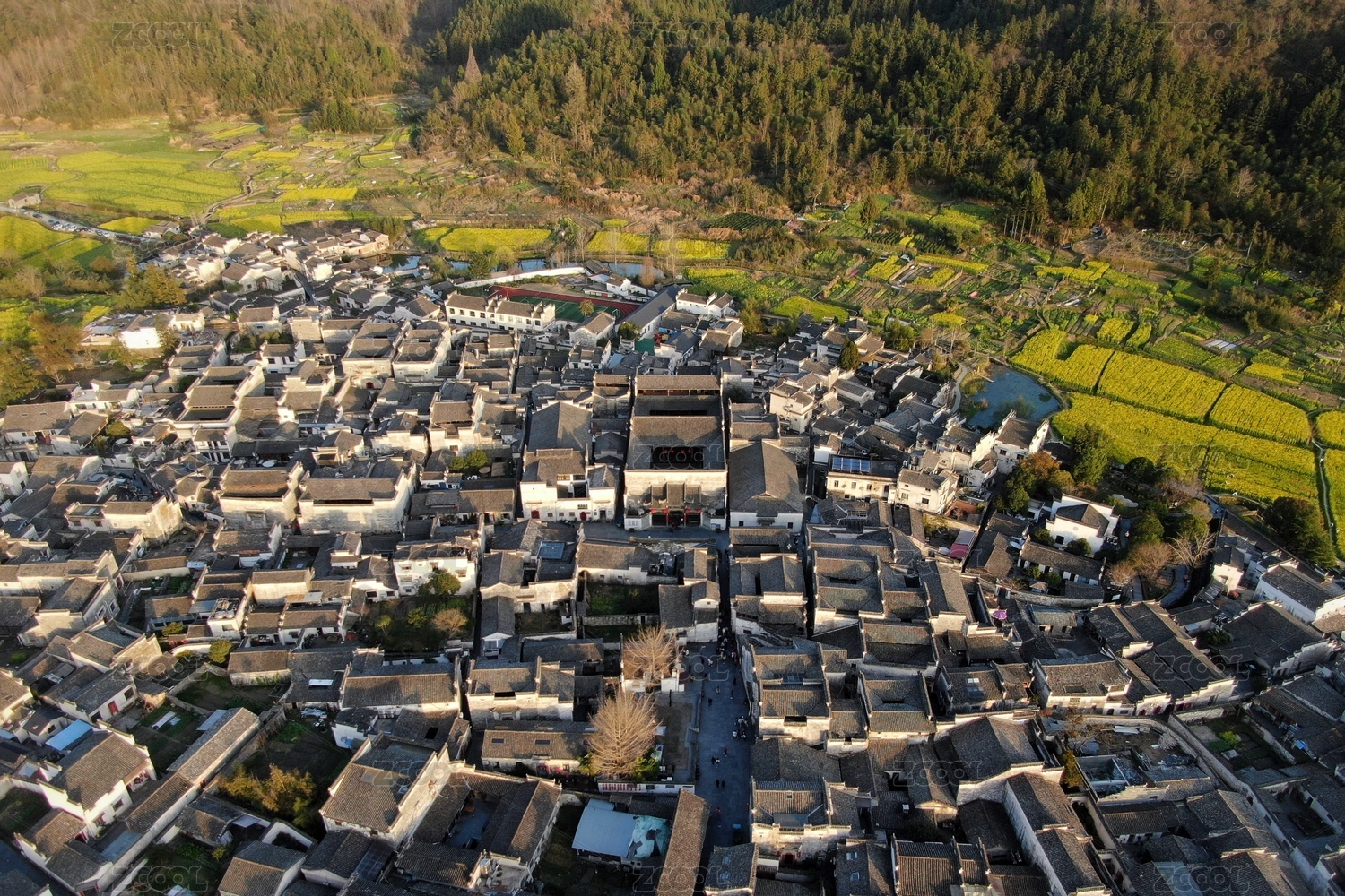 安徽宏村水墨江南古镇徽派建筑群航拍