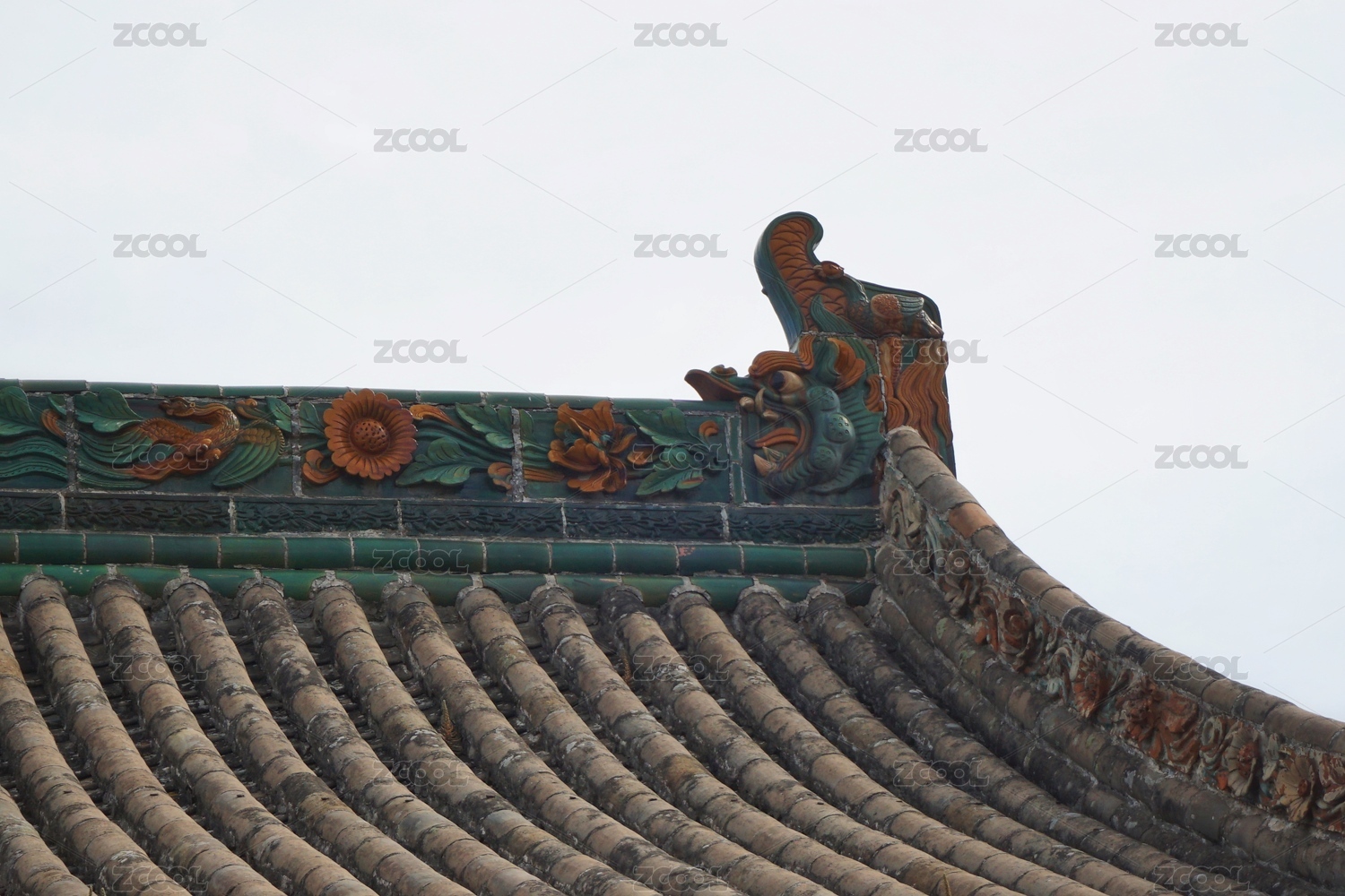 山西永乐宫古建筑房顶琉璃脊兽龙头