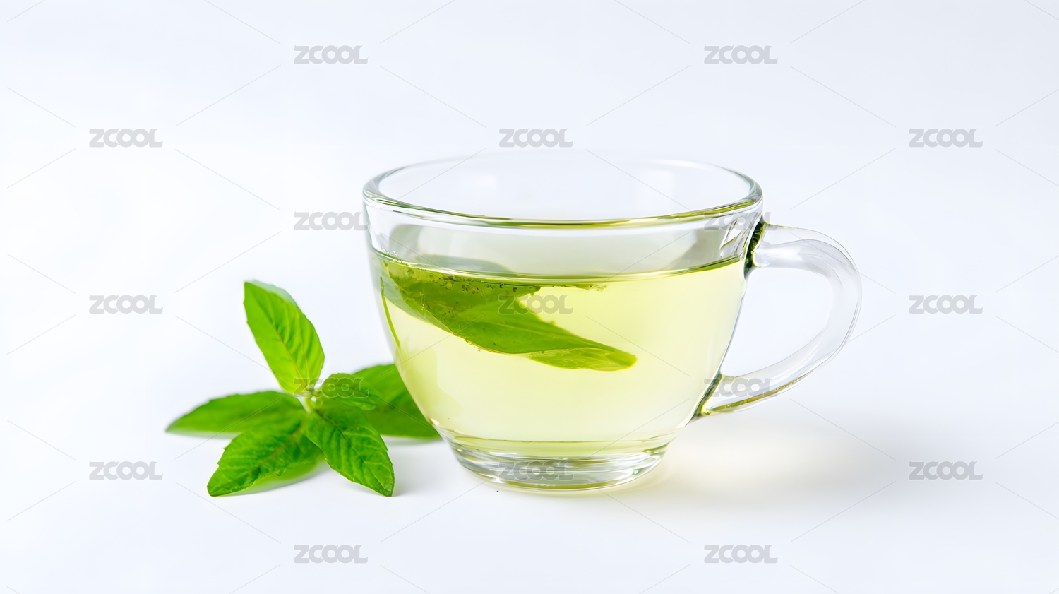 绿色,薄荷茶,茶,玻璃杯,杯子,一个,空白,室内,新鲜,叶子