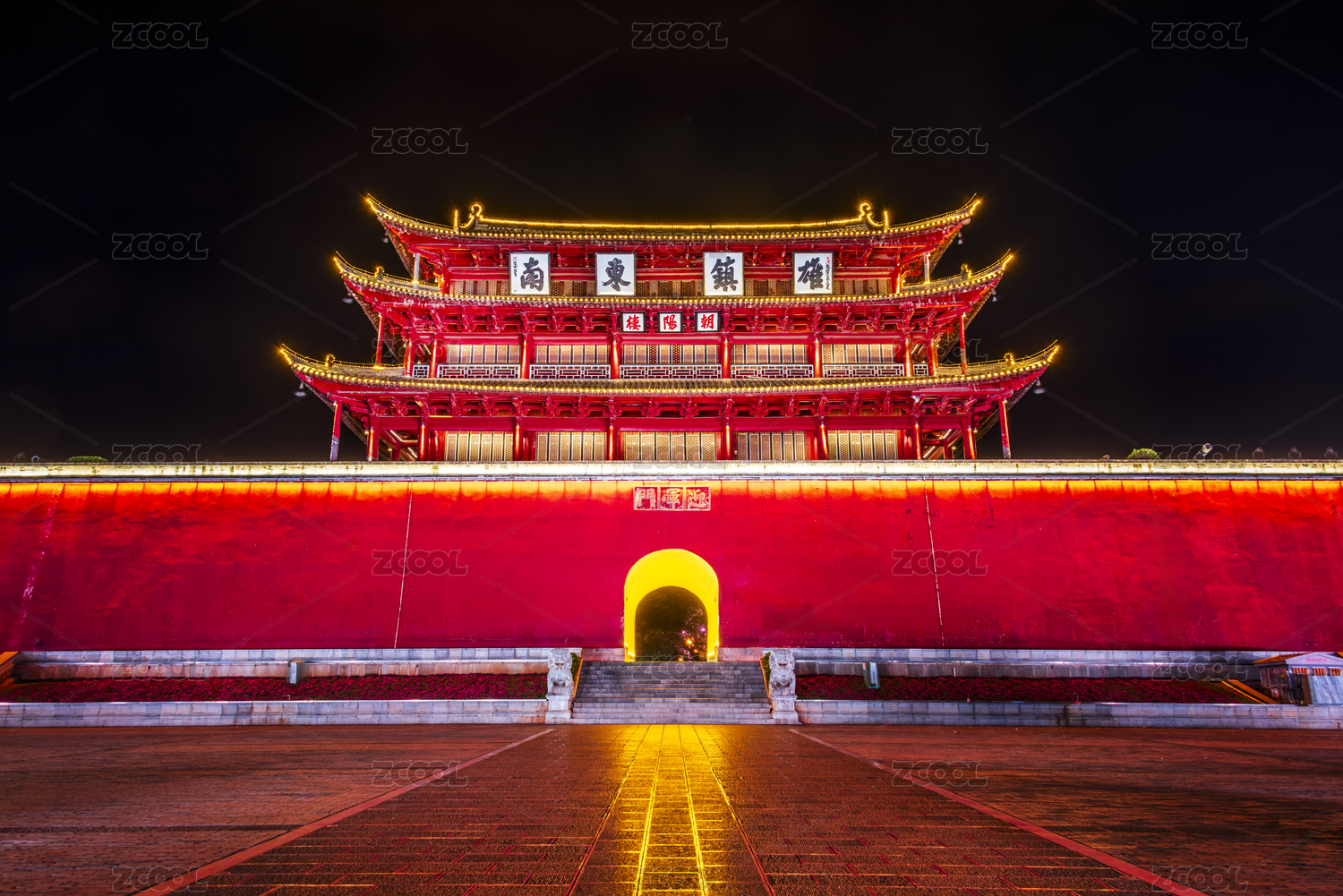 中国云南红河建水古城朝阳楼夜景