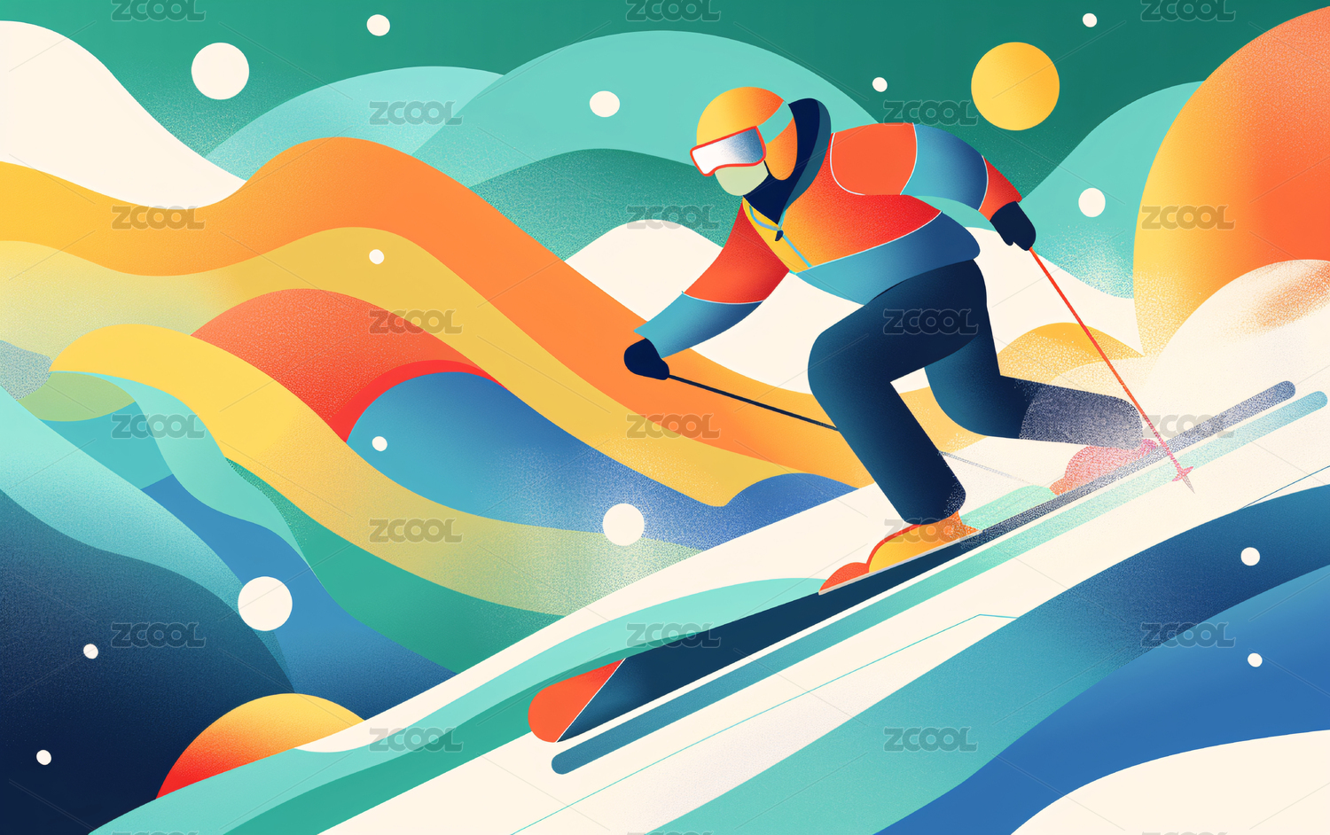 北京冬奥会运动插画冬天滑雪比赛人物海报