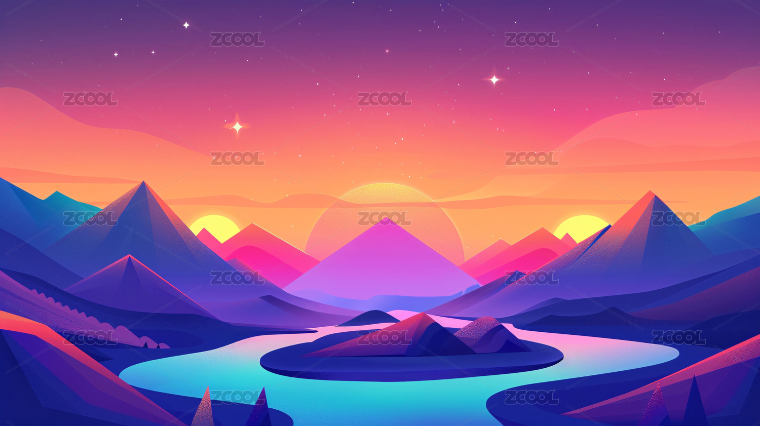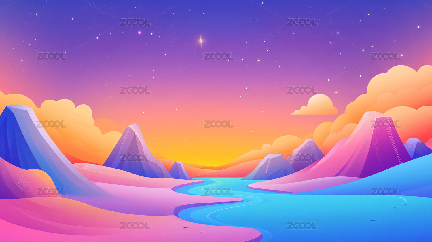 背景,风景,山峰,户外,山,唯美,渐变,插画,天空,自然