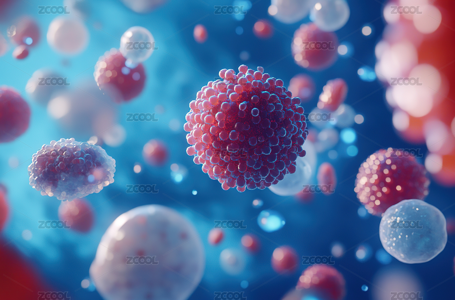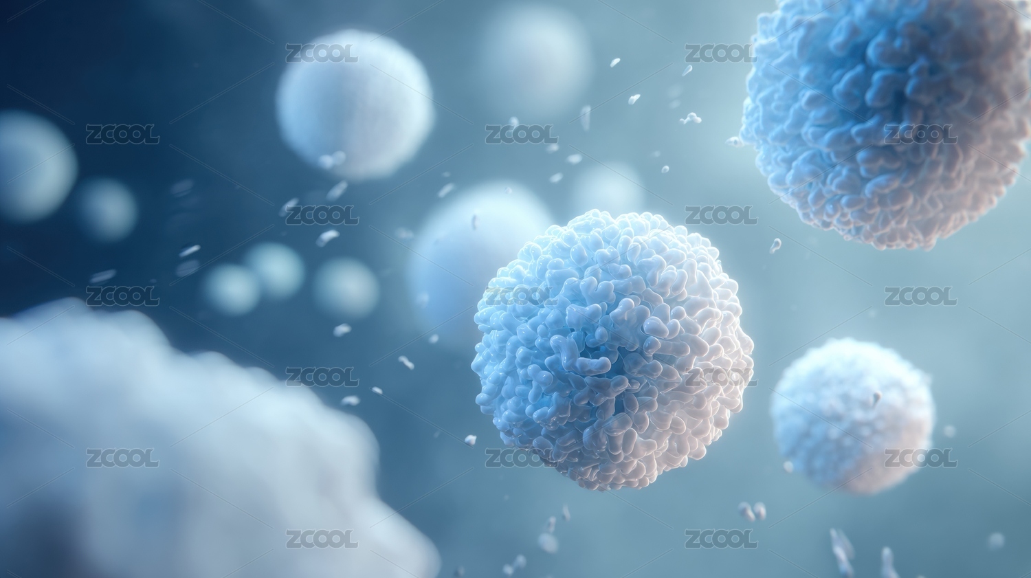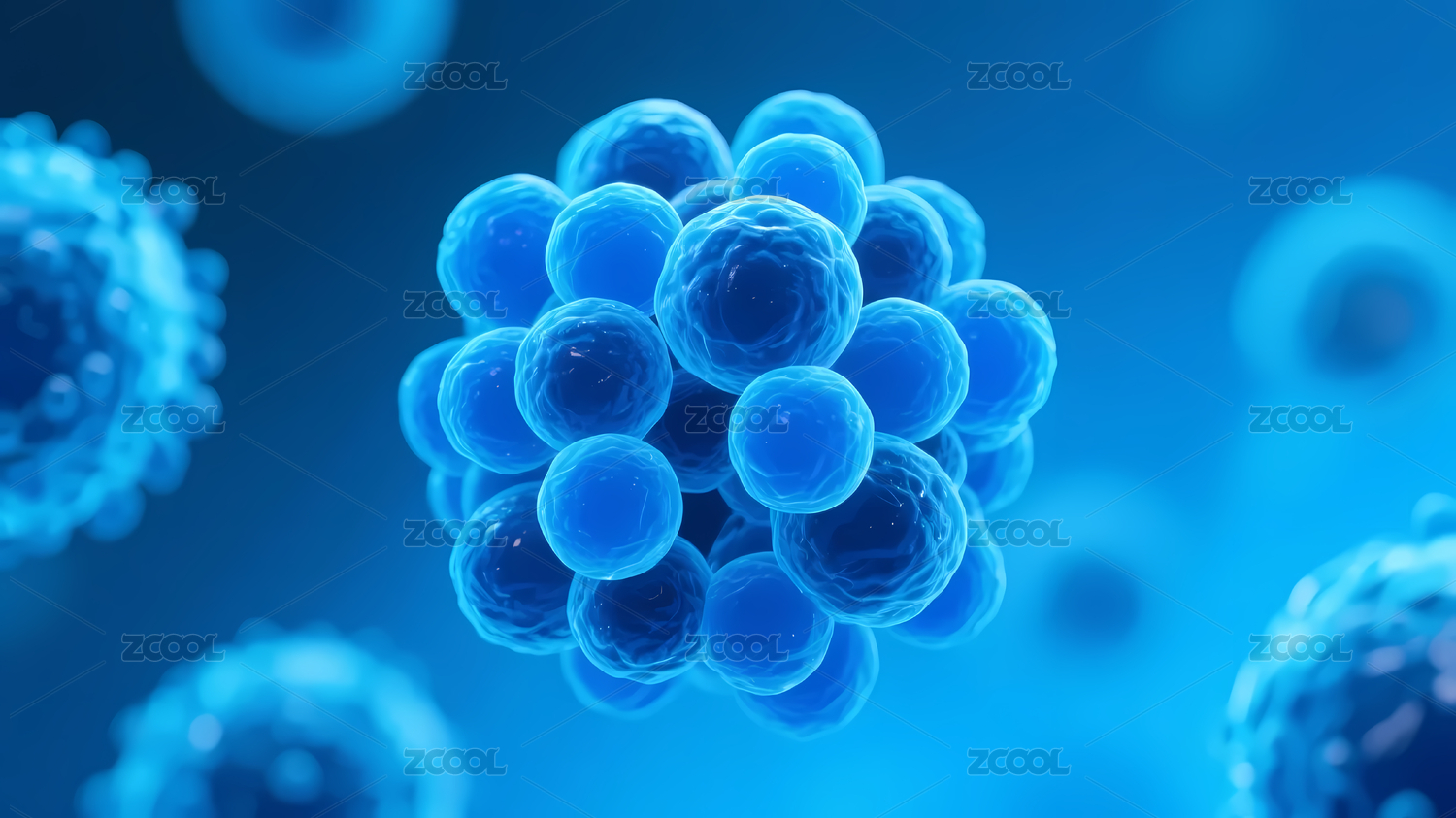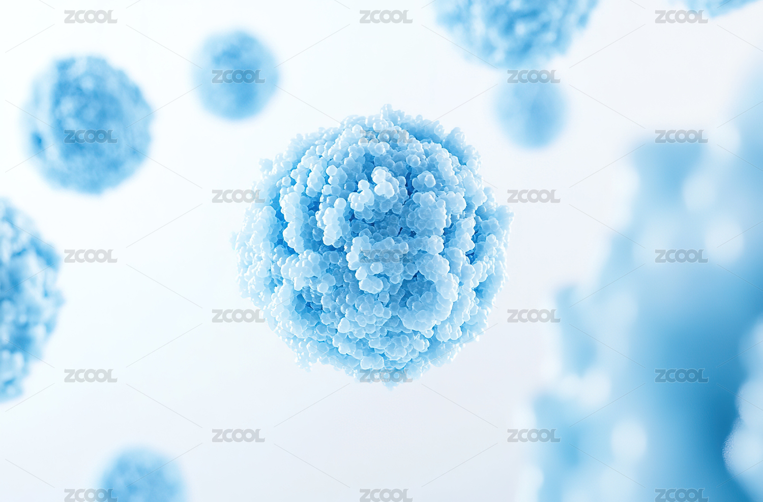 蓝色细胞病毒医学生物科研3D插画
