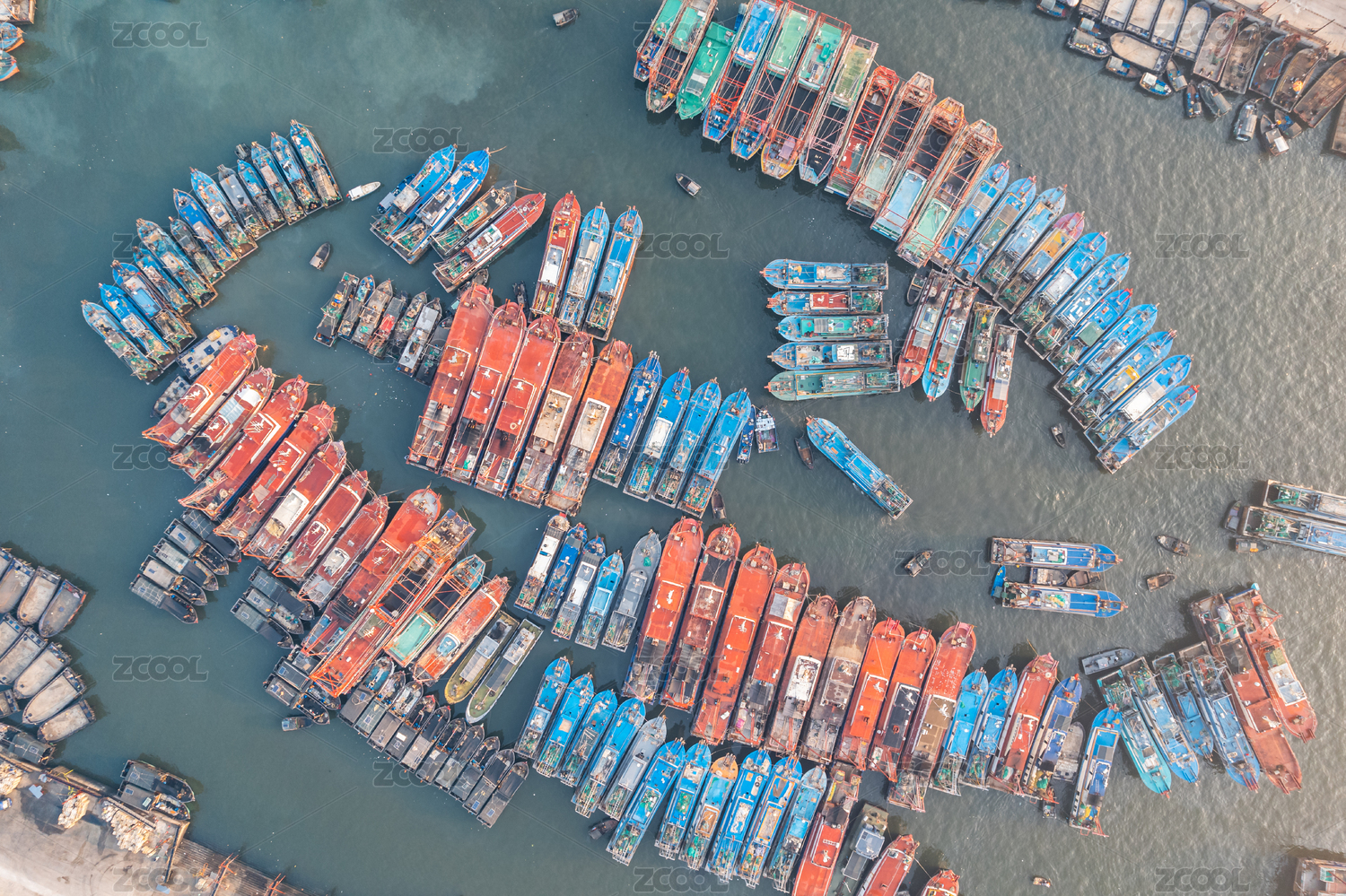 航拍中国福建省漳州东山岛的渔港、渔排、渔业