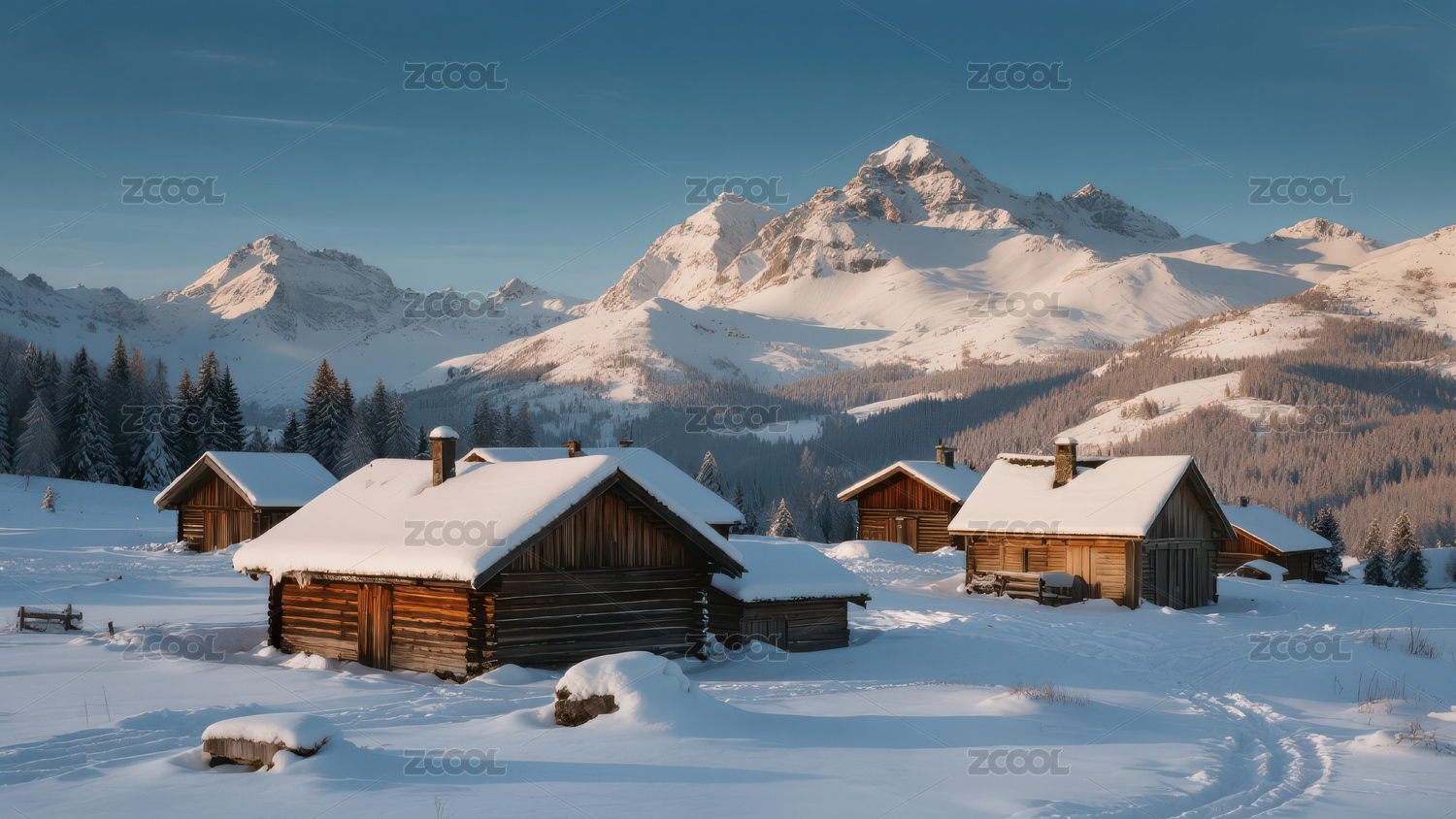 雪山木屋冬日静谧