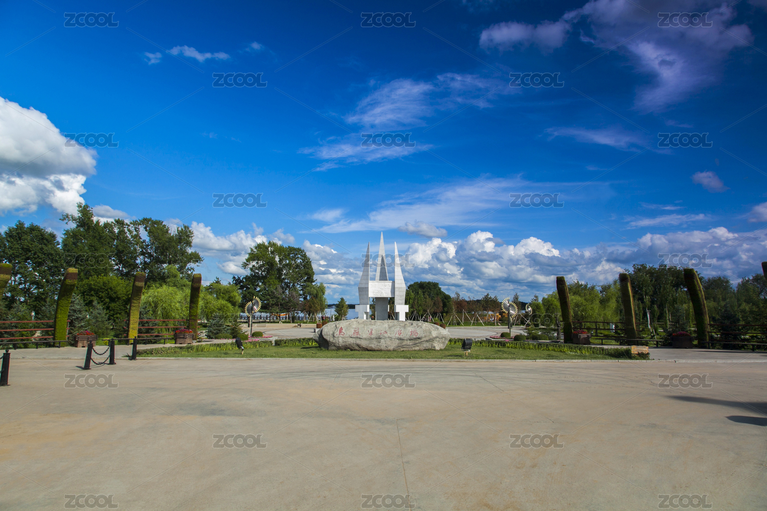 夏季青海省西宁市文化公园里的内部景色
