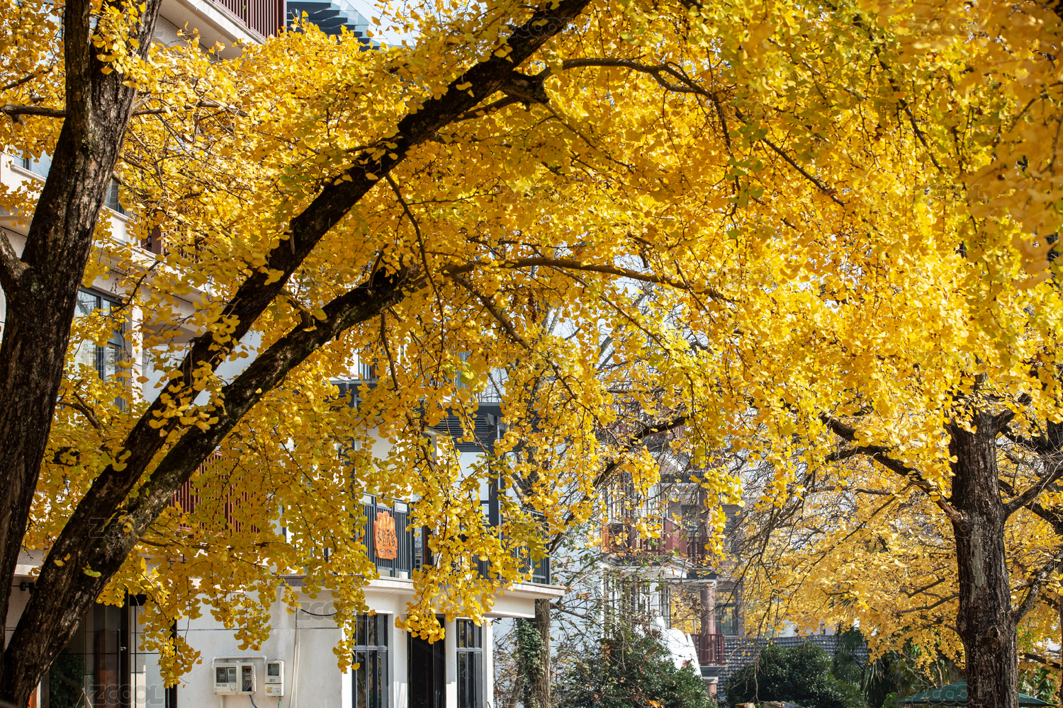 深秋的银杏树