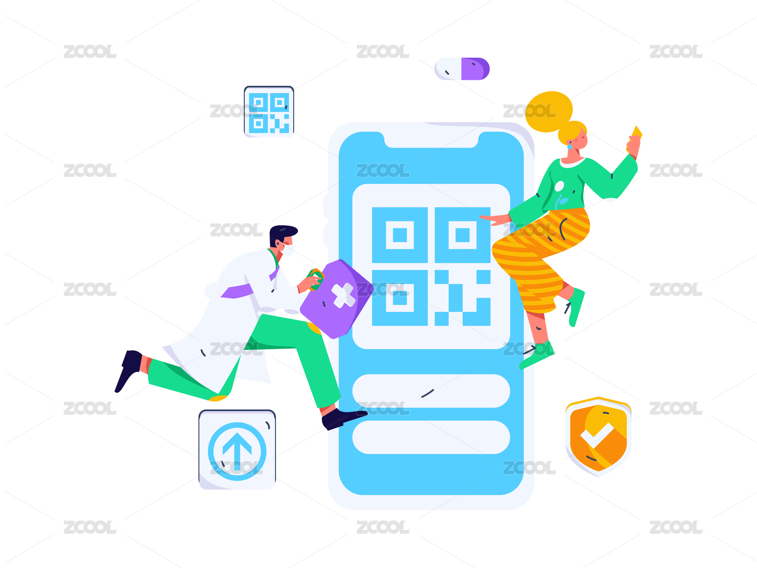 绿码医生防疫抗疫扁平矢量概念运营插画