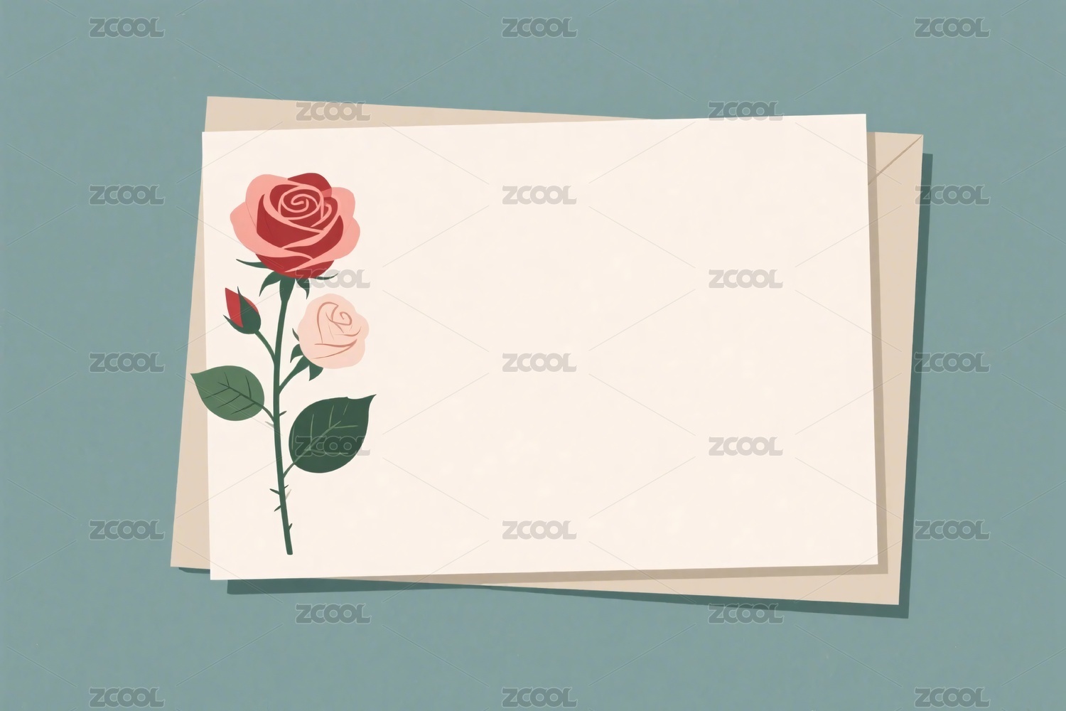 精美红玫瑰与空白卡片