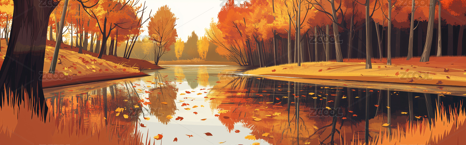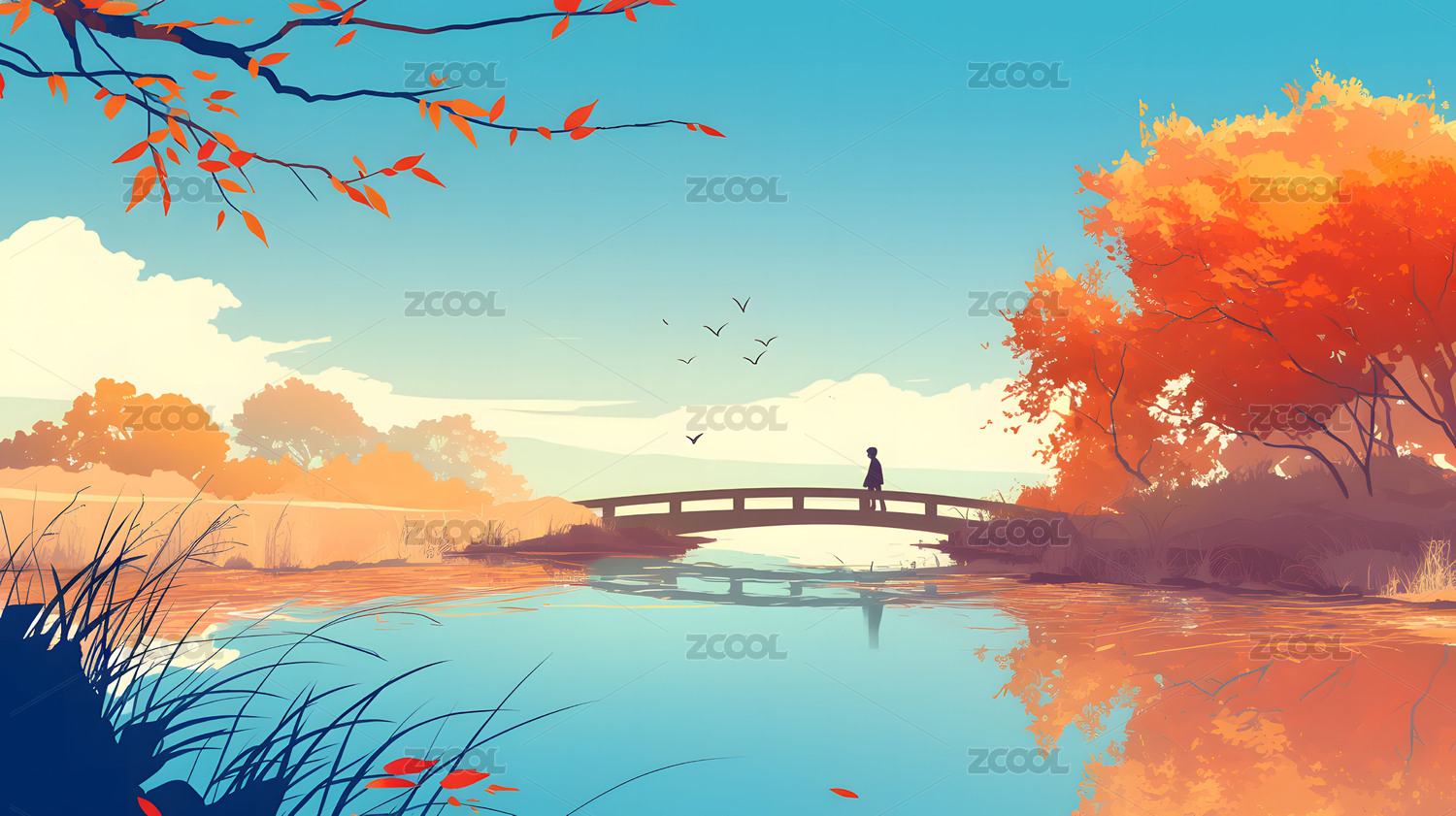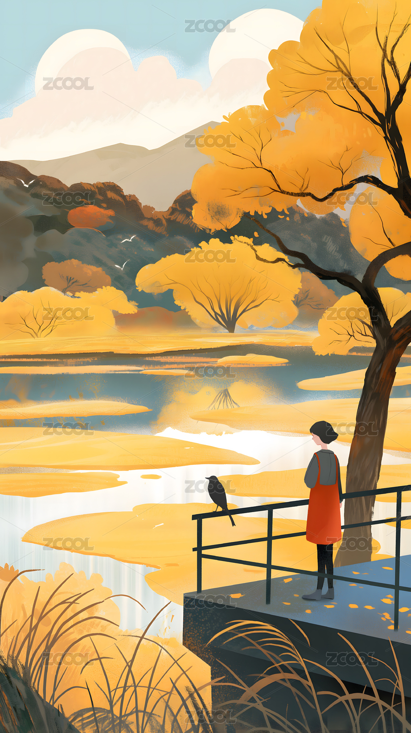 秋天,植物,秋风,宁静,寂静,远景,留白,插画,抽象,萧瑟