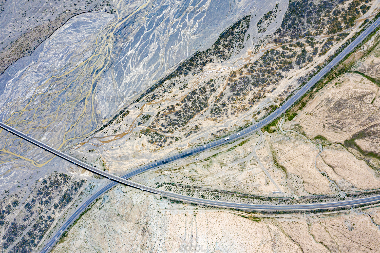 俯拍中国青海格尔木河和青藏线