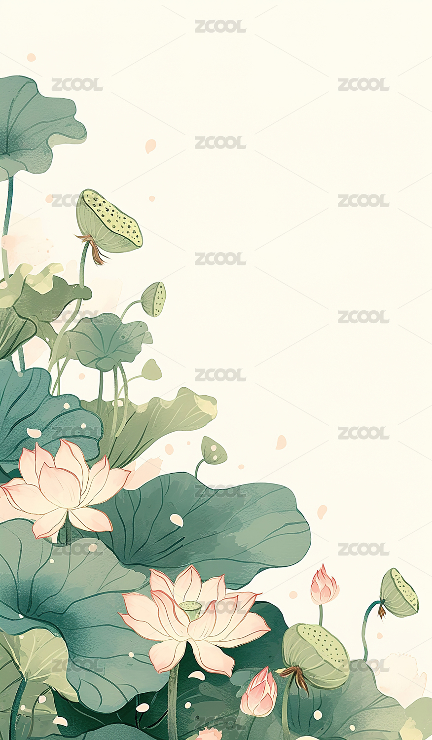 荷花植物国风插画背景