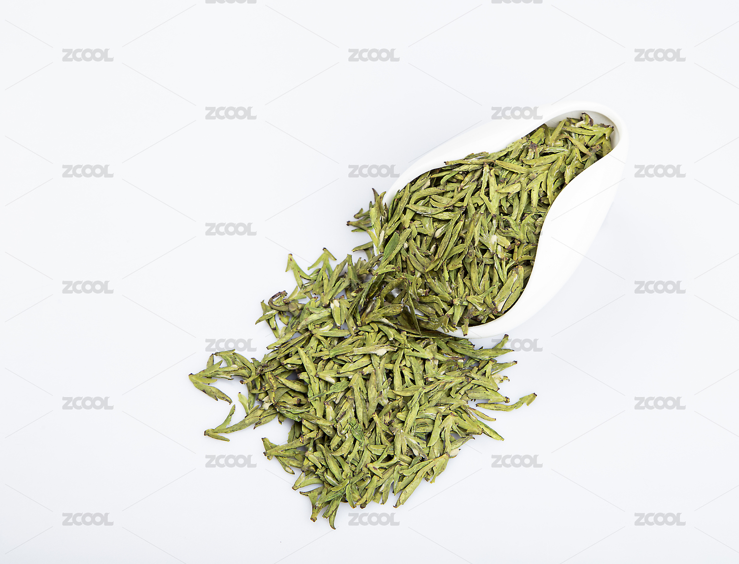 高山绿茶茶叶摆放在白色背景上